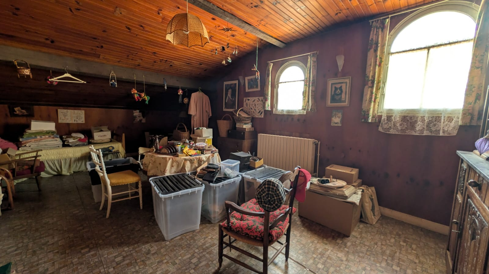 À l'étage, vous trouverez deux chambres supplémentaires, plus trois combles (deux d'environ 12 m² et un de 14 m²), idéales pour une famille ou pour aménager des espaces de travail.