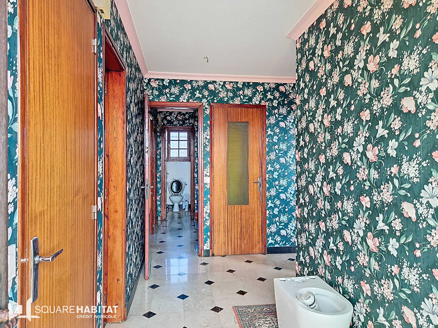 Au rez-de-chaussée, un vaste hall d'entrée dessert une cuisine indépendante aménagée et équipée, un salon-salle à manger lumineux de 35 m², trois chambres, une salle de bains ainsi qu'un WC indépendant.