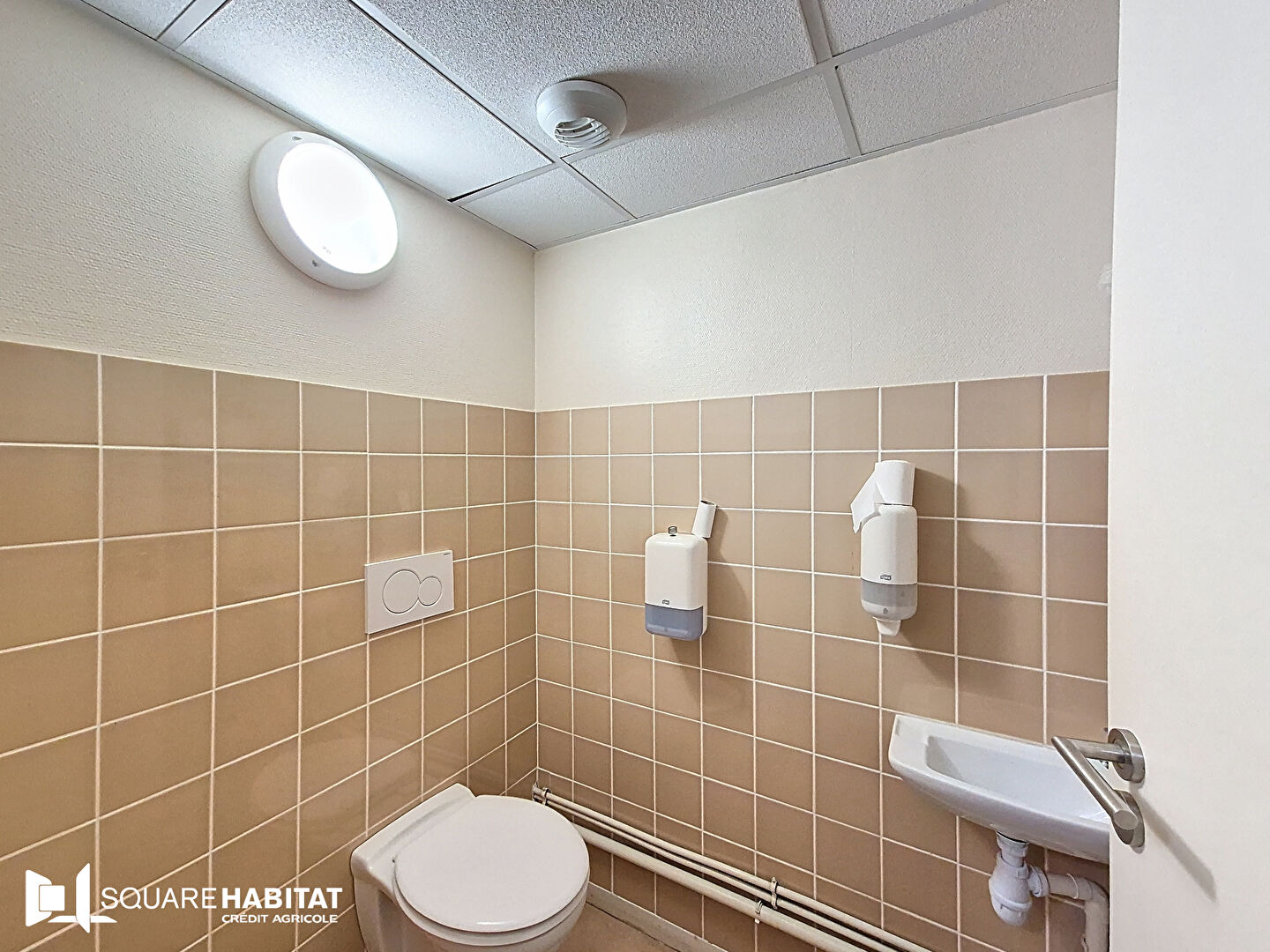 Au rez-de-chaussée, vous trouverez : un hall d'accueil, une salle d'attente, un bureau, un local technique, une pièce à usage de chambre forte, un espace dédié au personnel ainsi que des sanitaires.