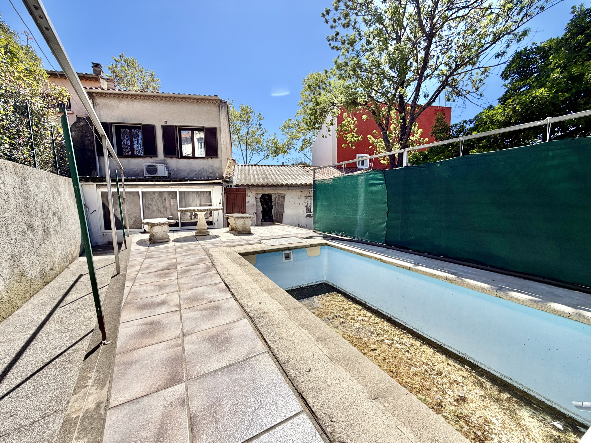 Le jardin est doté d'une piscine de moins de 10m2, d'un puit ainsi que de deux cabanons en fond de parcelle.