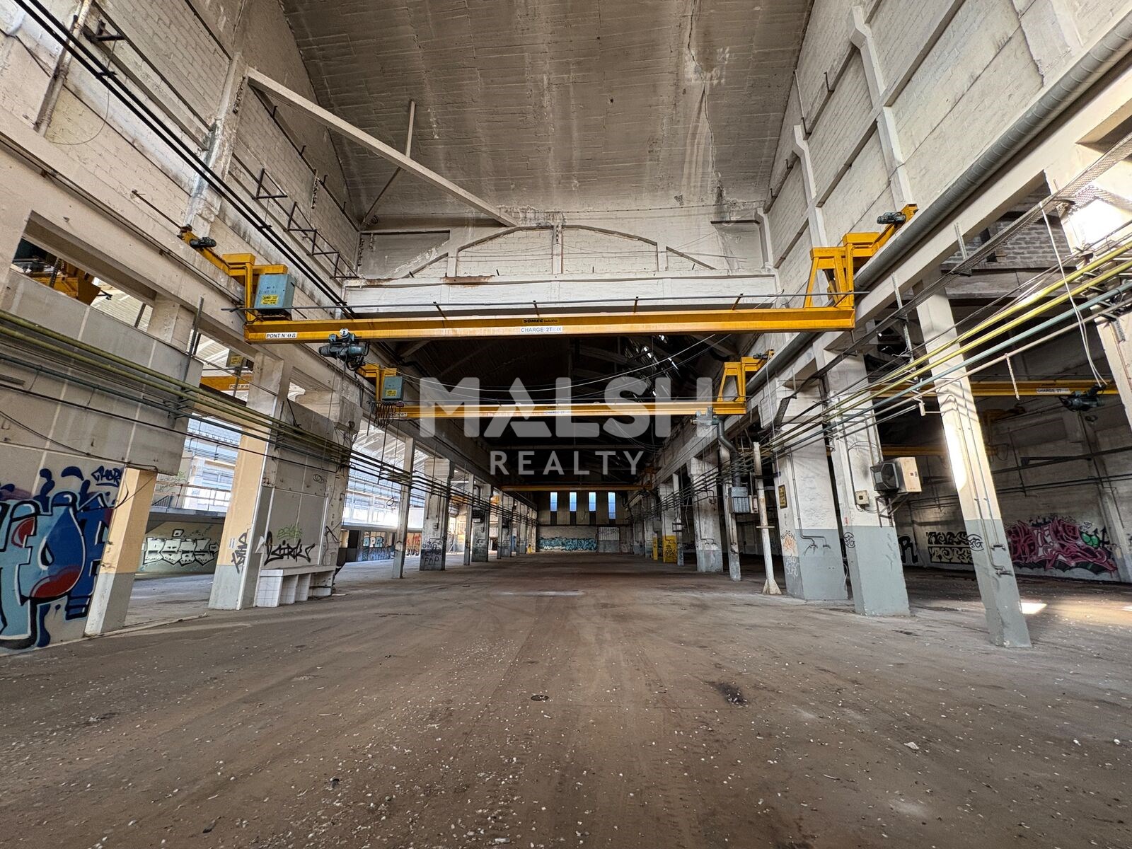 À proximité immédiate du Centre Commercial Givors 2 Vallées à Givors, sur une ancienne friche industrielle, nous vous proposons à la vente, un bâtiment industriel d'une surface totale d'environ 4 387 m². Ce local est équipé de ponts roulants de 2 à 30 tonnes et bénéficie d'une très grande hauteur.