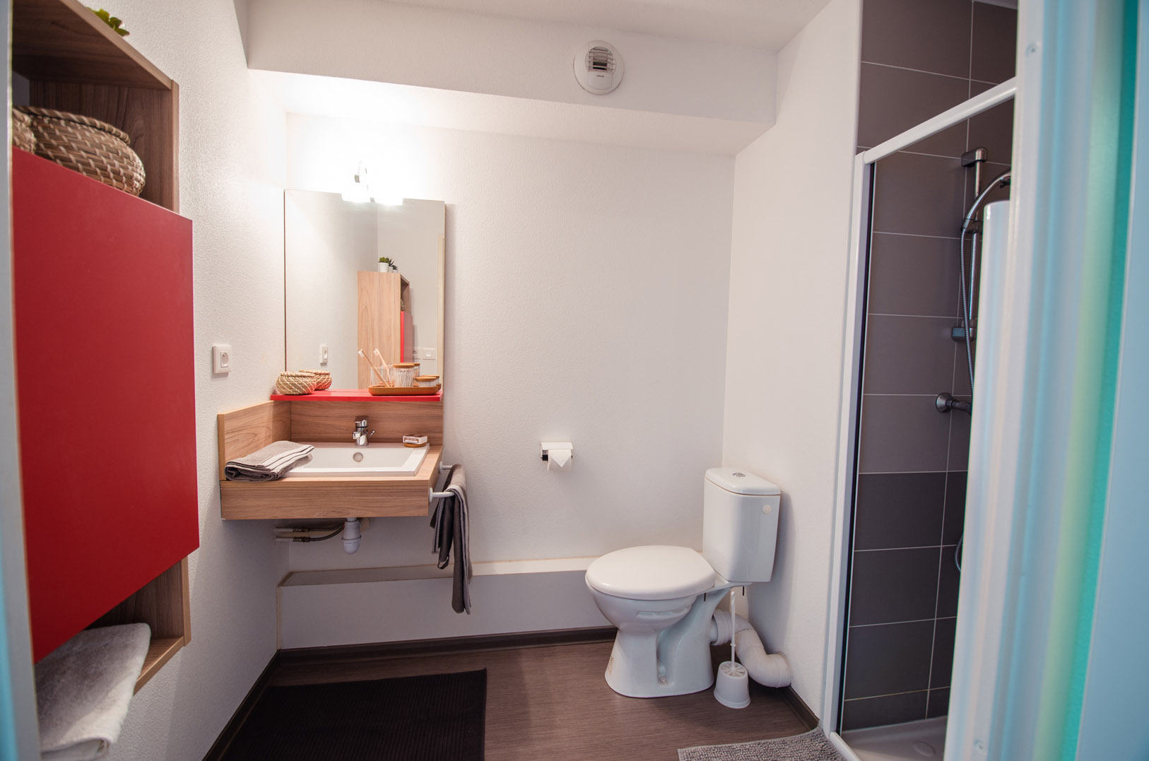 - Equipement du logement étudiant : kitchenette équipée avec plaques vitrocéramiques, réfrigérateur, four à micro-ondes, kit vaisselle ; mobilier complet ; salle d'eau avec douche et WC.