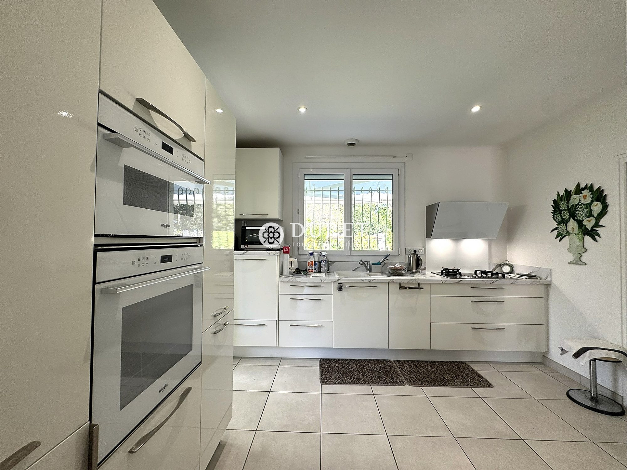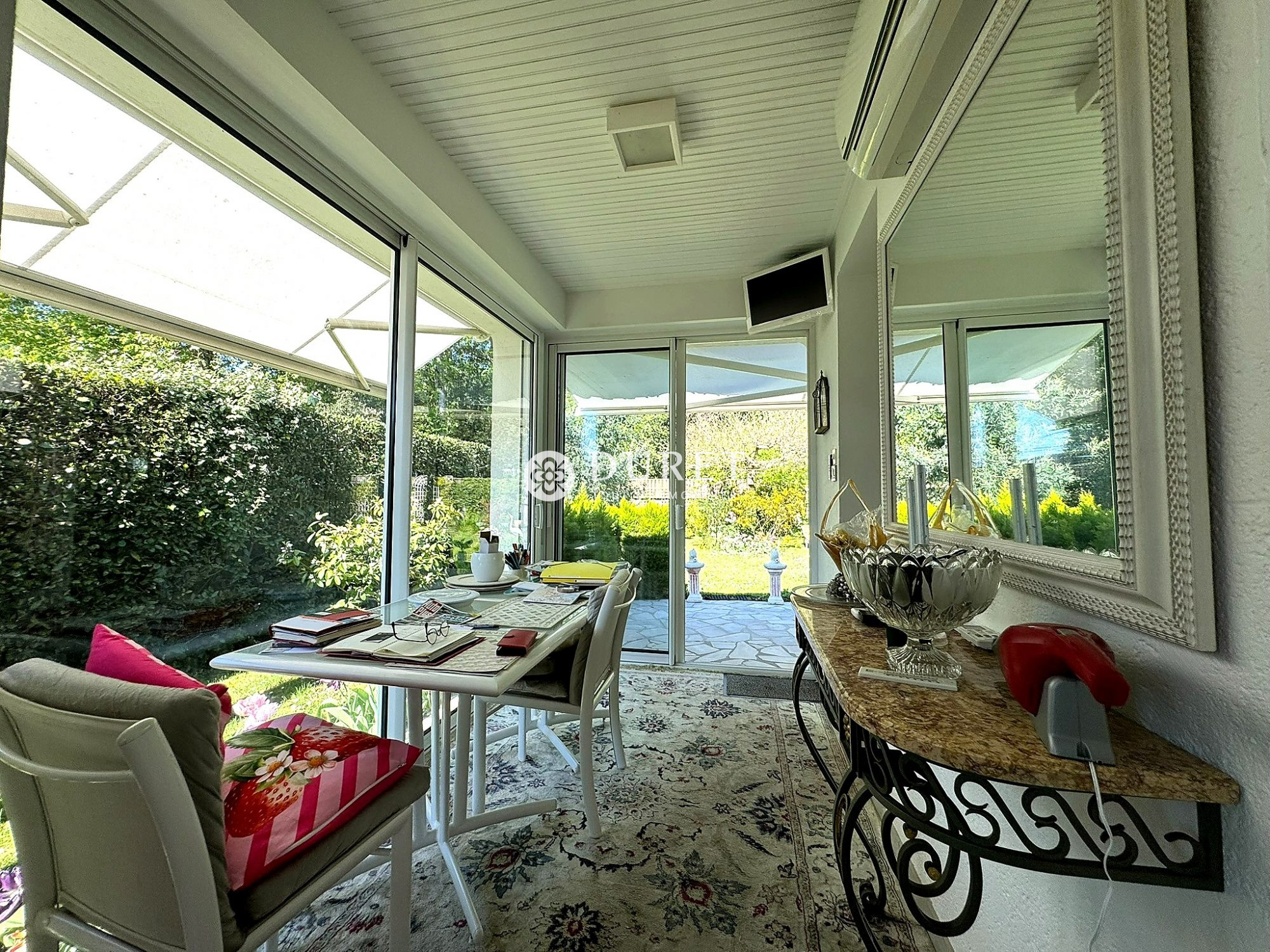 À l'extérieur, la propriété confirme son positionnement haut de gamme avec une vaste terrasse parfaitement exposée, équipée de stores bannes, propice aux moments de convivialité. Le jardin, soigneusement entretenu et piscinable, invite à la détente dans un cadre verdoyant. Un double garage d'environ 50 m² ainsi que plusieurs stationnements complètent les prestations.