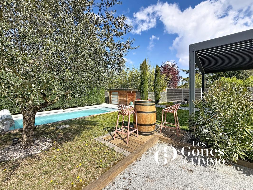 À l'extérieur, les prestations sont à la hauteur : une superbe piscine, une terrasse élégante agrémentée d'une pergola bioclimatique, ainsi qu'un terrain de pétanque, le tout dans un cadre soigné et propice à la détente.