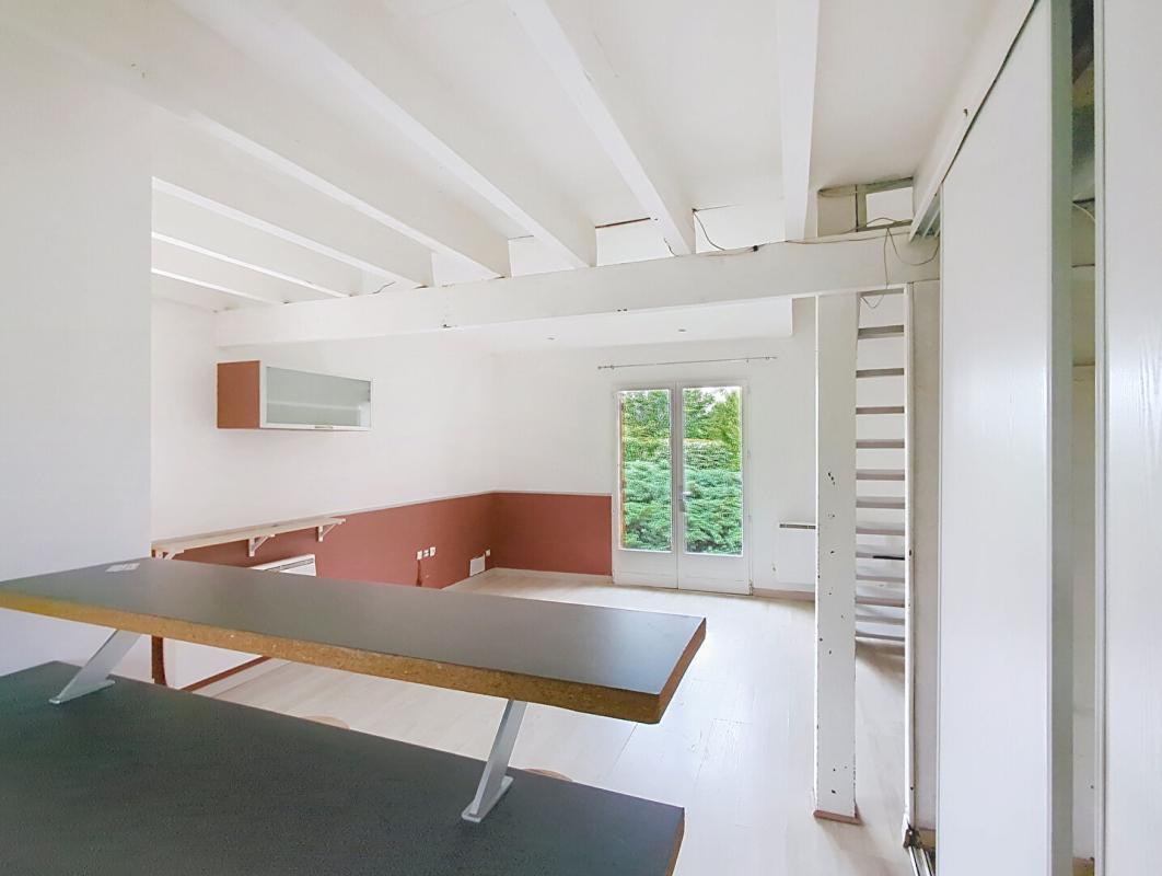 Ce logement comprend un séjour cosy avec cuisine ouverte, aménagée et équipée, ainsi qu'une salle d'eau avec WC. A l'étage, une grande chambre avec rangements offre un confort optimal.