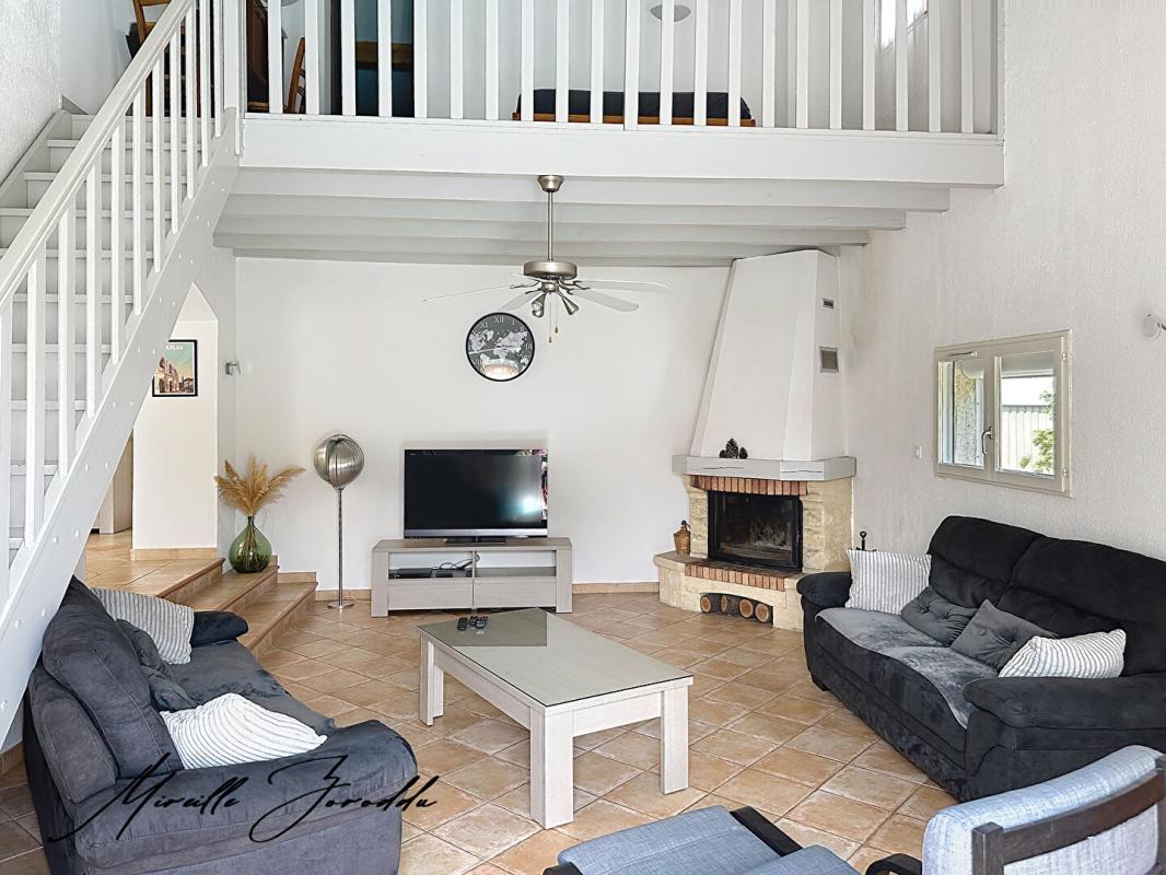 Elle se compose en rez-de-chaussée d'un spacieux espace de vie lumineux donnant sur une terrasse ombragée par une treille de vigne, d'un salon avec plafond cathédrale et cheminée pour des moments chaleureux, ainsi qu'une grande cuisine indépendante parfaitement aménagée. Le coin nuit est réparti en trois espaces distincts : une suite parentale côté Est et trois chambres avec placards, une salle de bain et WC côté Ouest,