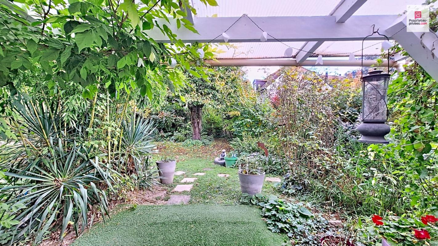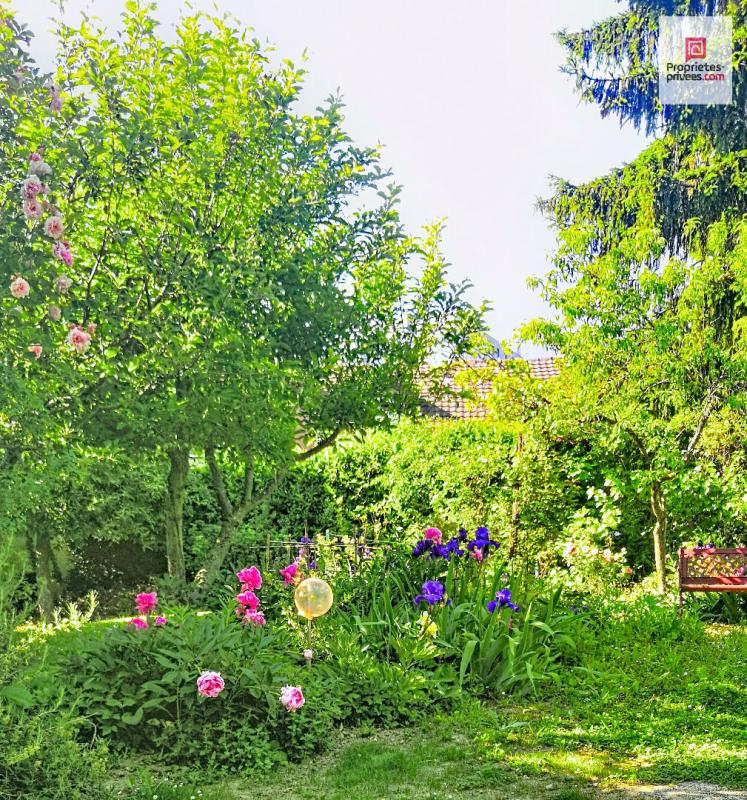 son jardin : une oasis de fraicheur avec ces 4 pommiers, 2 cerisiers, 1 poirier, 1 pêcher, 1 figuier et ces 22 rosiers, son magnolia ses bambous, yuccas, catalpa et d'autres à découvrir...