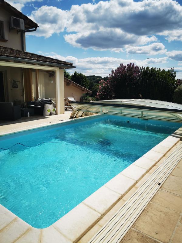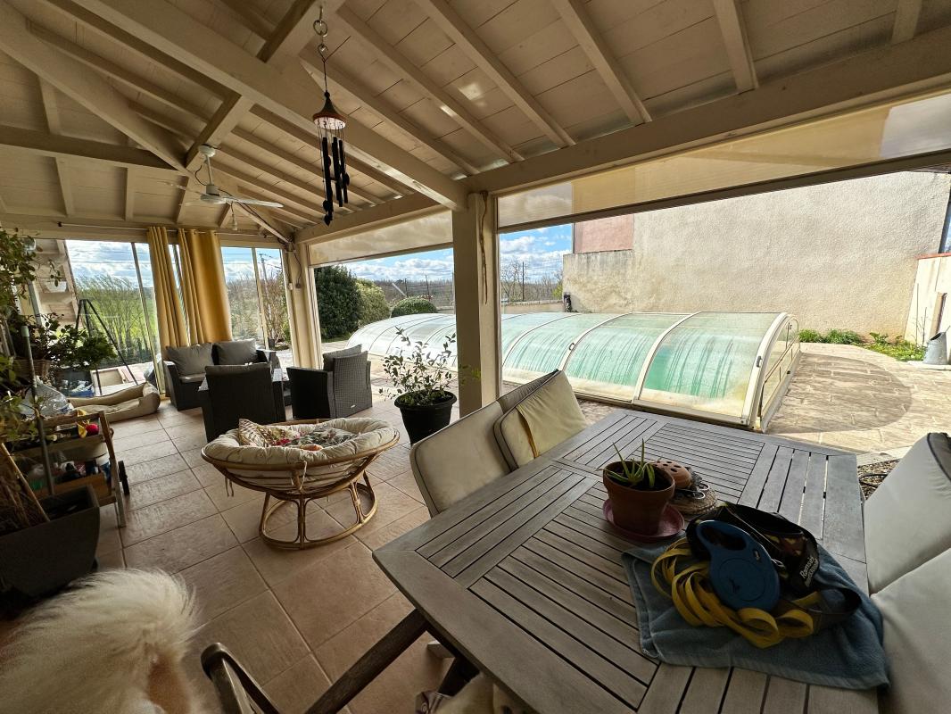 Charmante maison de 156 m² en très excellent état, à vendre à Vaïssac . Elle offre une décoration et un confort moderne : 5 chambres, une grande pièce à vivre lumineuse et des prestations haut de gamme : pompe à chaleur, chauffage biénergie, panneaux solaires, poêle à bois, puits raccordé à la maison, aspiration centralisée. Salle de bain avec douche à l'italienne et baignoire. Jardin, terrasse reposante, piscine et double garages . Calme, jolie vue, à 3 km des supermarchés et écoles, et proche des transports en commun . Prix : 263 400 EUR. Contactez-nous pour une visite !