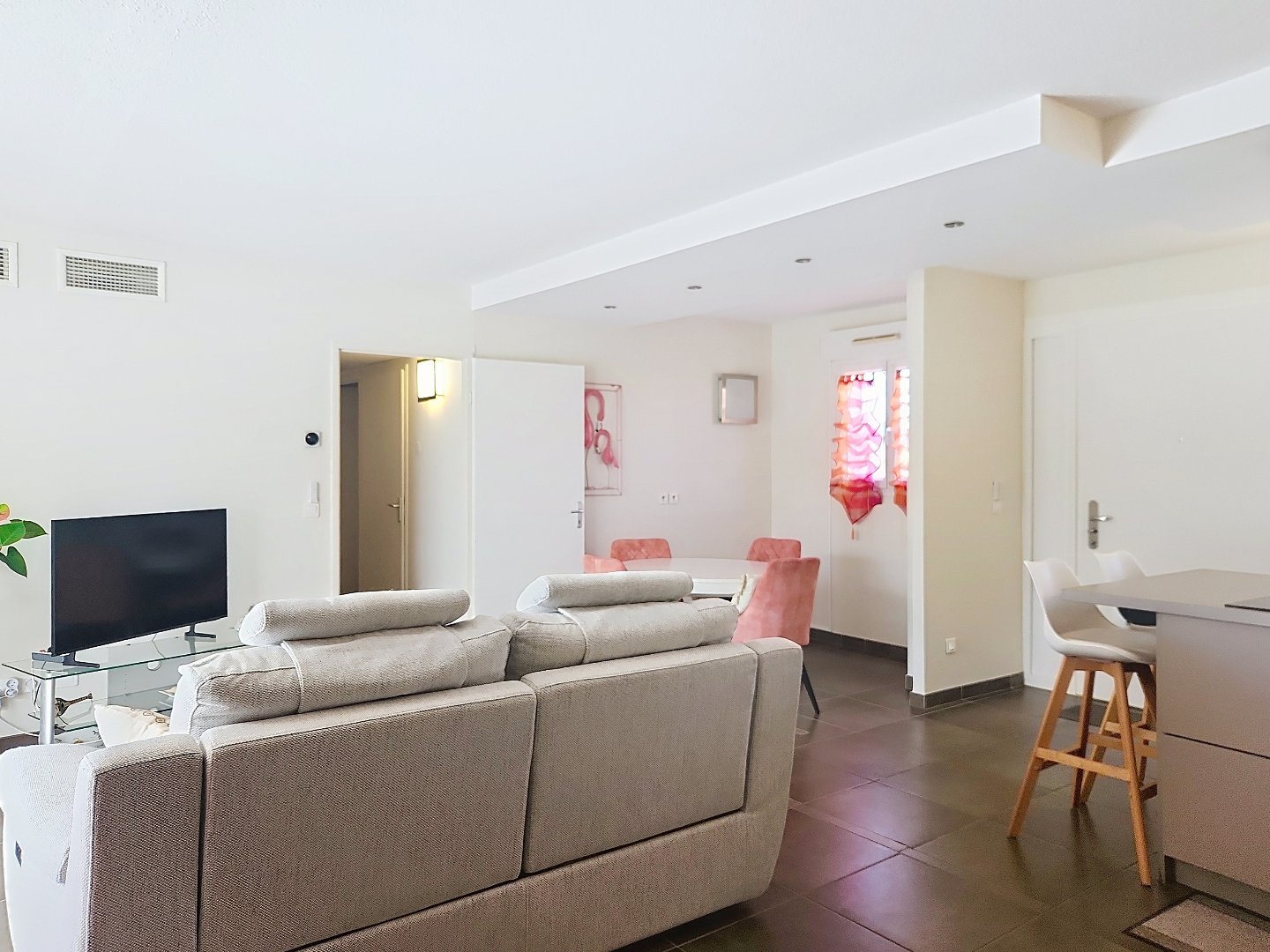 comprenant un grand séjour ouvert sur cuisine avec son accès sur une terrasse exposée sud, agrémentée d'une pergola bioclimatique, avec vue sur la garrigue.