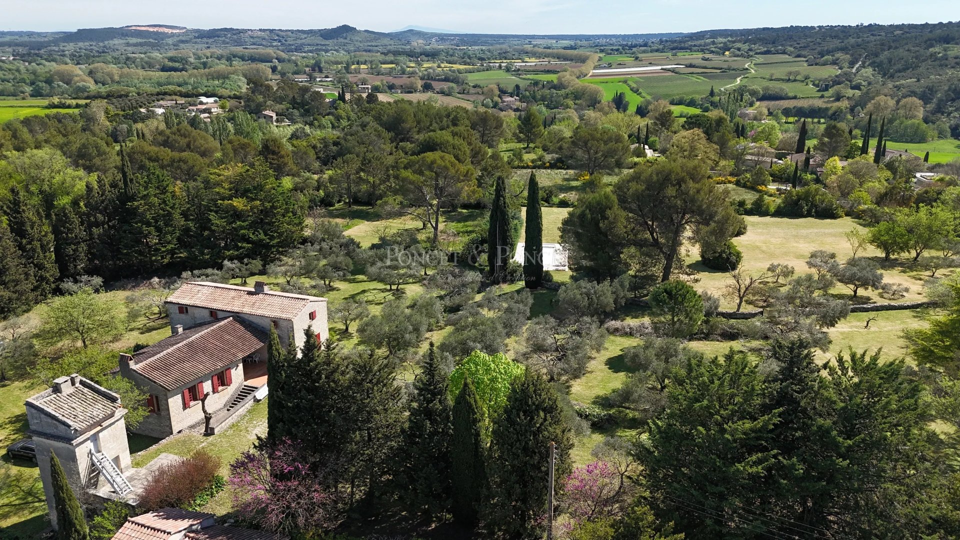 À moins de 10 minutes à pied de la place aux Herbes d’Uzès, cette propriété rare de 2,5 hectares offre un cadre de vie exceptionnel, à la fois paisible et préservé, au cœur d’un environnement naturel d’une grande beauté. Niché à l’abri des regards, ce mas séduit par son atmosphère aux accents de Toscane, entouré de nombreux oliviers et bénéficiant de remarquables vues dégagées.