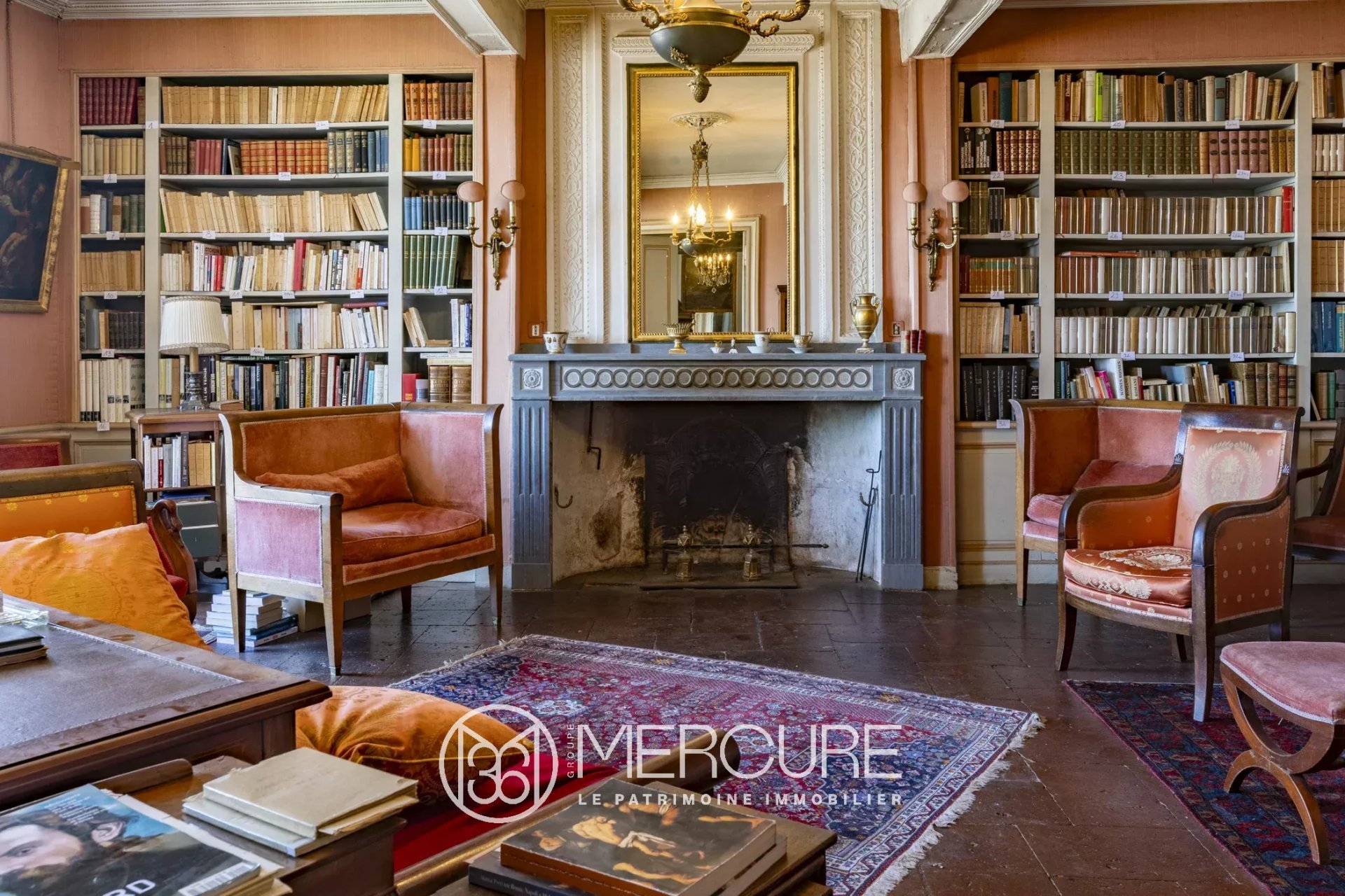 En cœur de village, cette maison de maître édifiée en 1730 développe environ 440 m² habitables au sein d’une parcelle close et arborée de 1 159 m².