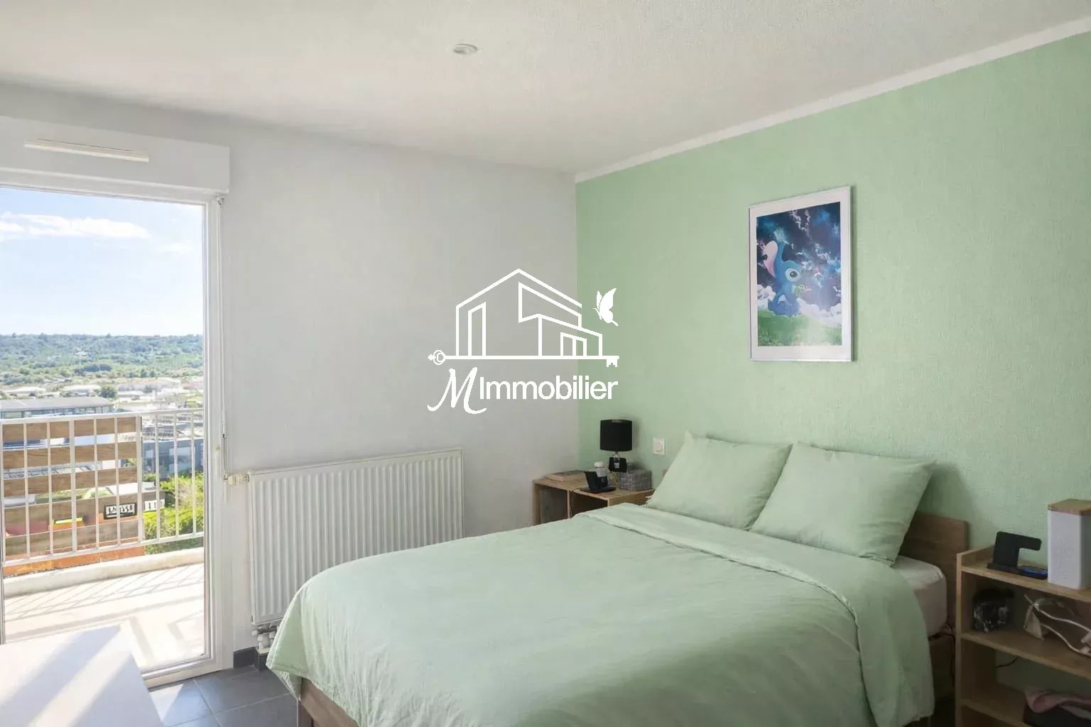 Le bien dispose d'un entrée avec placard, cuisine équipée ouverte sur séjour avec terrasse de 10m2, une chambre avec placard, salle d'eau, WC.