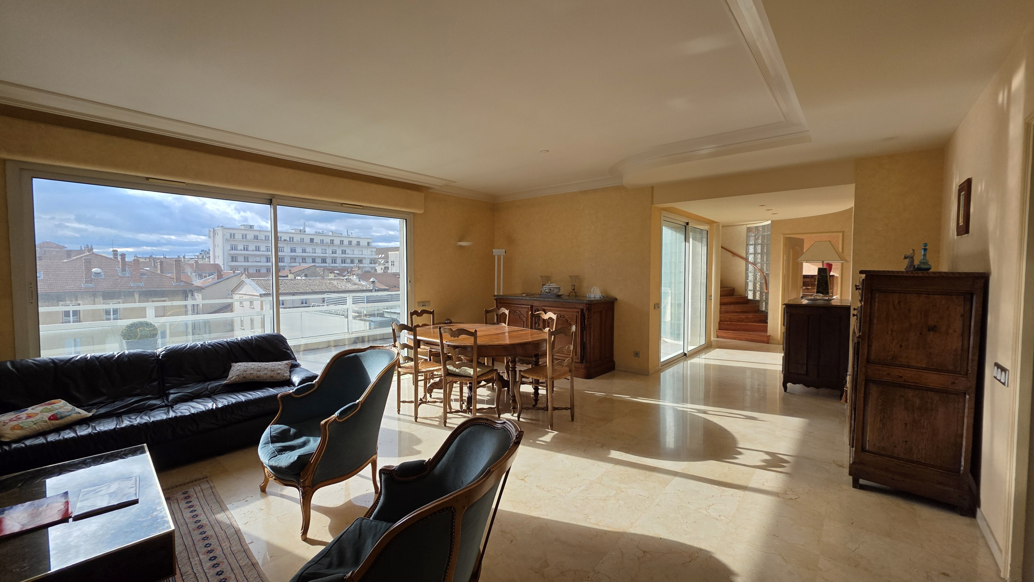Au 4e et dernier étage d'une petite copropriété de standing de 8 lots, vous disposerez d'un séjour avec cheminée de 58m2 orienté sur une terrasse bénéficiant d'une vue dégagée d'Est en Ouest, une cuisine indépendante entièrement équipée avec arrière cuisine, toilette indépendant, et chambre avec dressing (avec possibilité de créer une salle de bain). A l'étage vous apprécierez l'espace nuit qui se compose de 3 chambres dont une avec salle d'eau, dressing, salle de bain, toilette indépendant et un bel espace bureau.