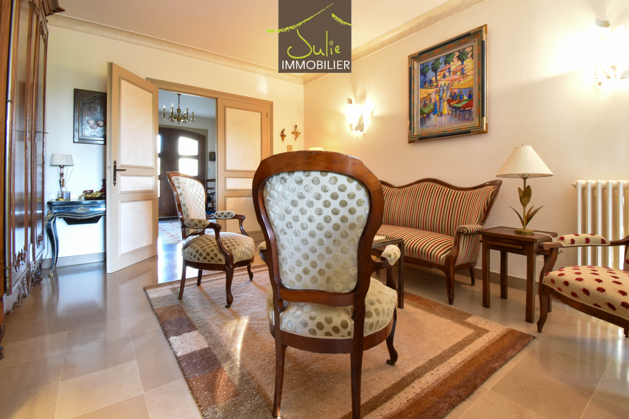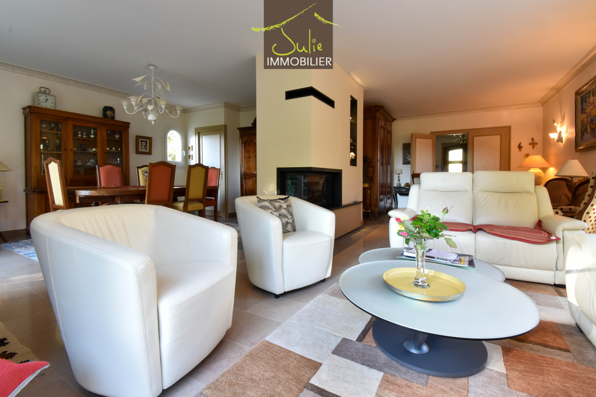 Cerizay - Idéalement situé, à proximité des commerces et des écoles, dans un parc ombragé et clos (interphone) de 2690m2, beau pavillon d'environ 200 m2 habitable avec accès de plain-pied comprenant : hall d'entrée (vestiaires), grande pièce de vie de 60 m2 lumineuse avec cheminée insert de 2019 et accès direct sur une agréable terrasse de 80 m2, une cuisine aménagée, dégagement sur 4 chambres, dont une suite parentale avec salle de bains et WC, autre salle de bains, bureau ou 5ème chambre. Au sous-sol aménagé on retrouve une salle de jeux de 23 m2, une buanderie, un cellier, un atelier, une chaufferie, une cave et un grand garage (80 m2) avec portail motorisé. Ce pavillon offre de beaux espaces intérieurs/extérieurs et des prestations de qualité. Idéal pour résidence familiale !