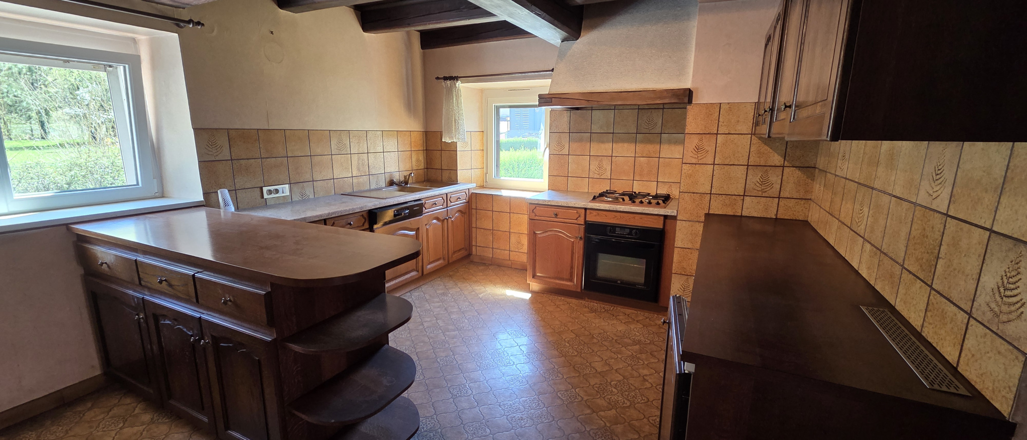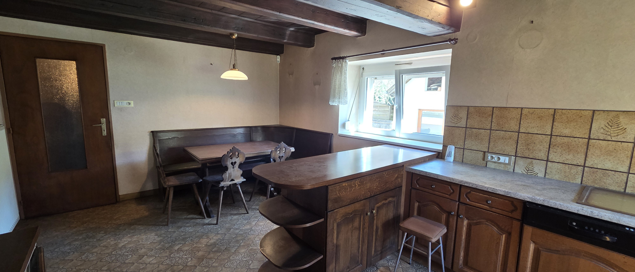 Le cachet de cette maison est magnifié par la présence d'une cheminée à foyer ouvert et surtout d'un authentique poêle de masse (Kacheloffe) dans le dégagement, diffusant une chaleur douce et un charme typique. Si la maison dispose de double vitrage en PVC et d'un chauffage central au gaz de ville, elle attend désormais une modernisation globale, incluant la mise aux normes de l'électricité et l'amélioration de l'isolation, pour révéler tout son éclat.