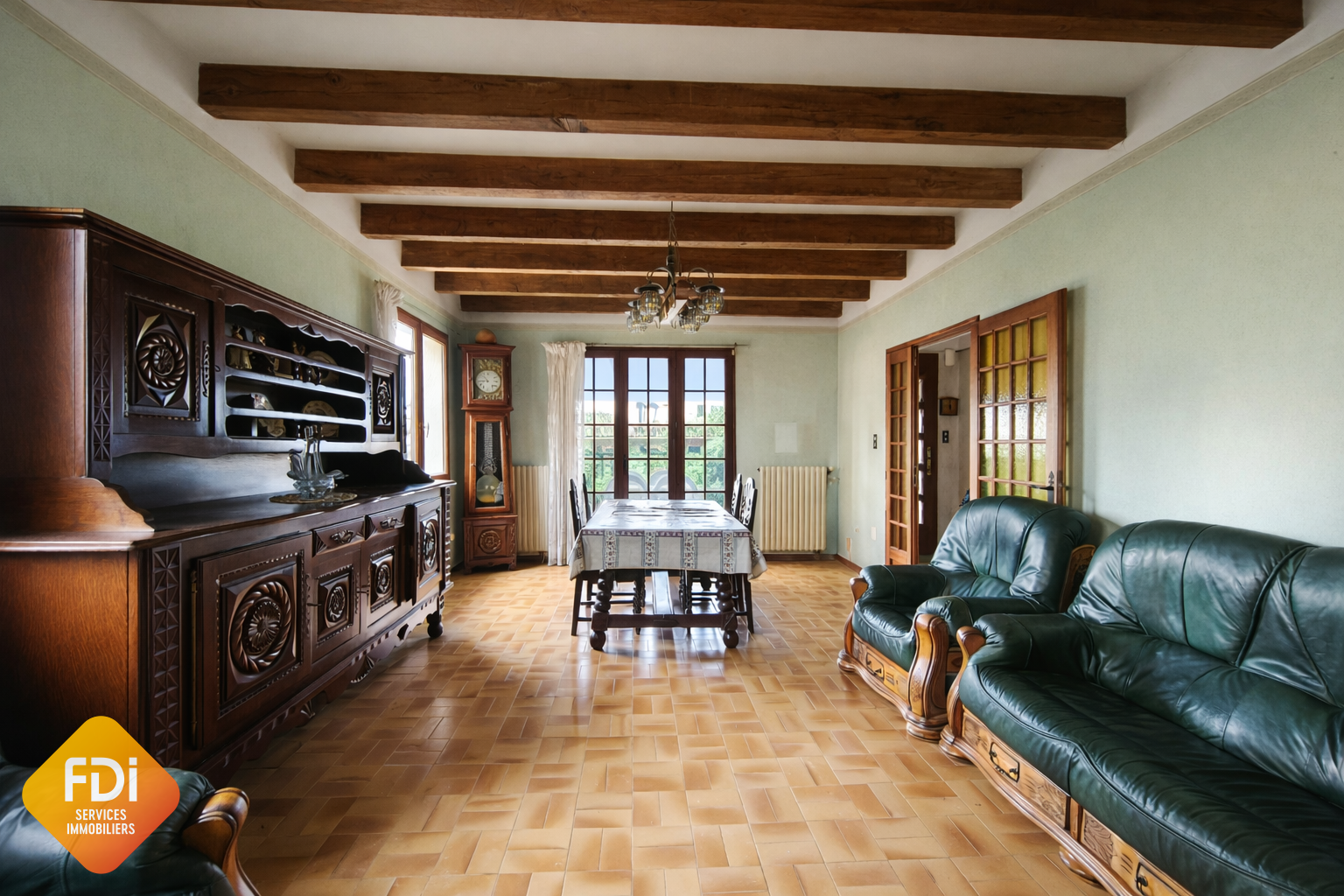 Elle se compose d'un salon salle à manger, d'une cuisine, de trois chambres, d'une salle de bain, et d'une salle d'eau. Un grand garage en sous sol de la maison avec un celllier et un coin buanderie complétent ce bien.