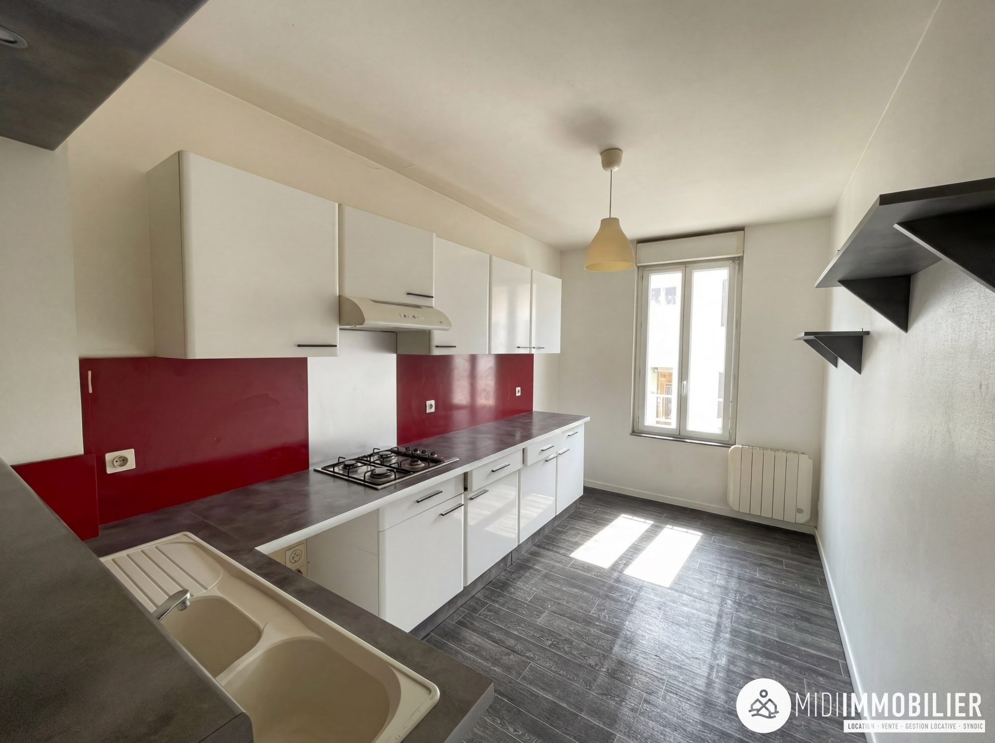 Au 1er étage d'une petite co propriété, voici ce beau T3 de 59m2 sans travaux, il est composé d'une cuisine ouverte sur le séjour, d'un wc indépendant, d'une salle d'eau et de 2 grandes chambres.