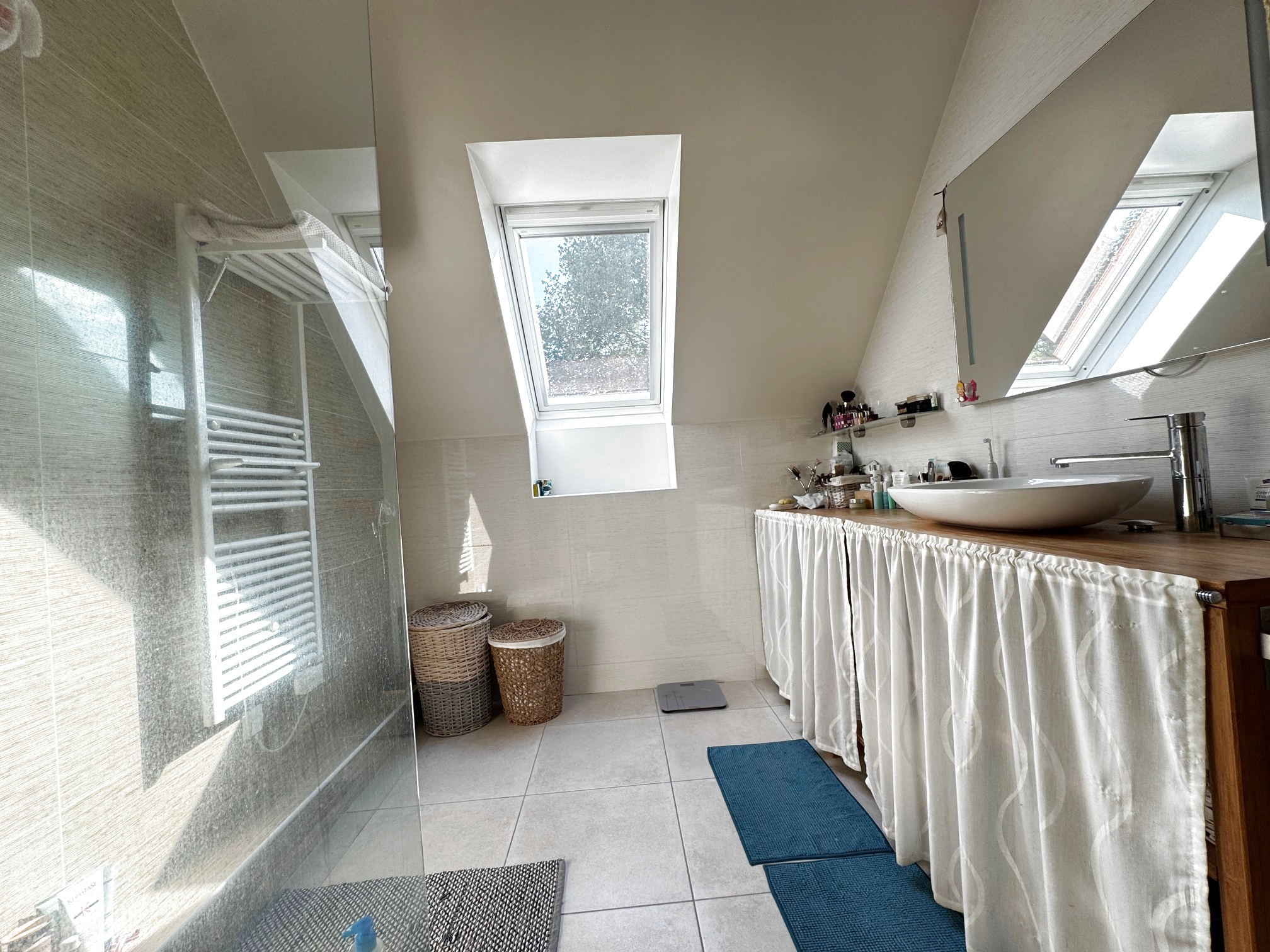 Dans une résidence sécurisée, belle maison individuelle de 2012 élevée sur 956 m2 de terrain comprenant vaste séjour salle à manger avec poële de masse en stéatite, ce qui apporte un mode de chauffage économique et confortable et cuisine contemporaine ouverte équipée, chambre, buanderie, wc. 1er étage: pièce palière ( coin bureau), 3 chambres dont une suite parentale avec dressing et salle d'eau, salle de bains et wc. Double vitrage PVC, Chauffre eau de 2023, adoucisseur d'eau, alarme. DPE : C Garage de 25 m2. Carport, abri de jardin et abri bois.
