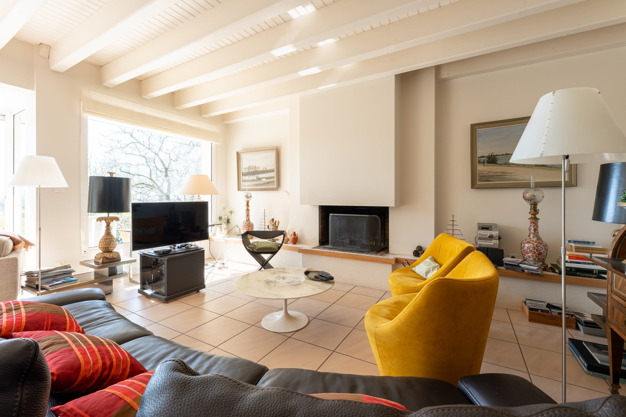 Dès le hall d'entrée, les volumes séduisent : un vaste séjour de 60 m², exposé plein sud, baigné de lumière avec une vision panoramique sur le jardin et la piscine, cheminée fonctionnelle. Depuis cet espace de vie, la vue sur la vallée de la Loire est remarquable et confère à la maison une dimension unique.