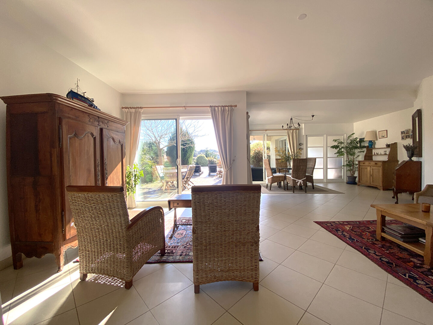 dans un écrin de verdure paisible, proche de l'océan et de la baie de Cayola, dans le domaine Saint-Martin, sur une parcelle de 1360m2 une villa lumineuse et ouverte sur l'extérieur, offrant depuis le hall d'entrée, une pièce à vivre orientée au sud, prolongée d'une terrasse spacieuse, intime, baignée de soleil, enveloppée par la nature, et sa piscine. Une grande cuisine indépendante aménagée et équipée, et une buanderie avec accès au garage.