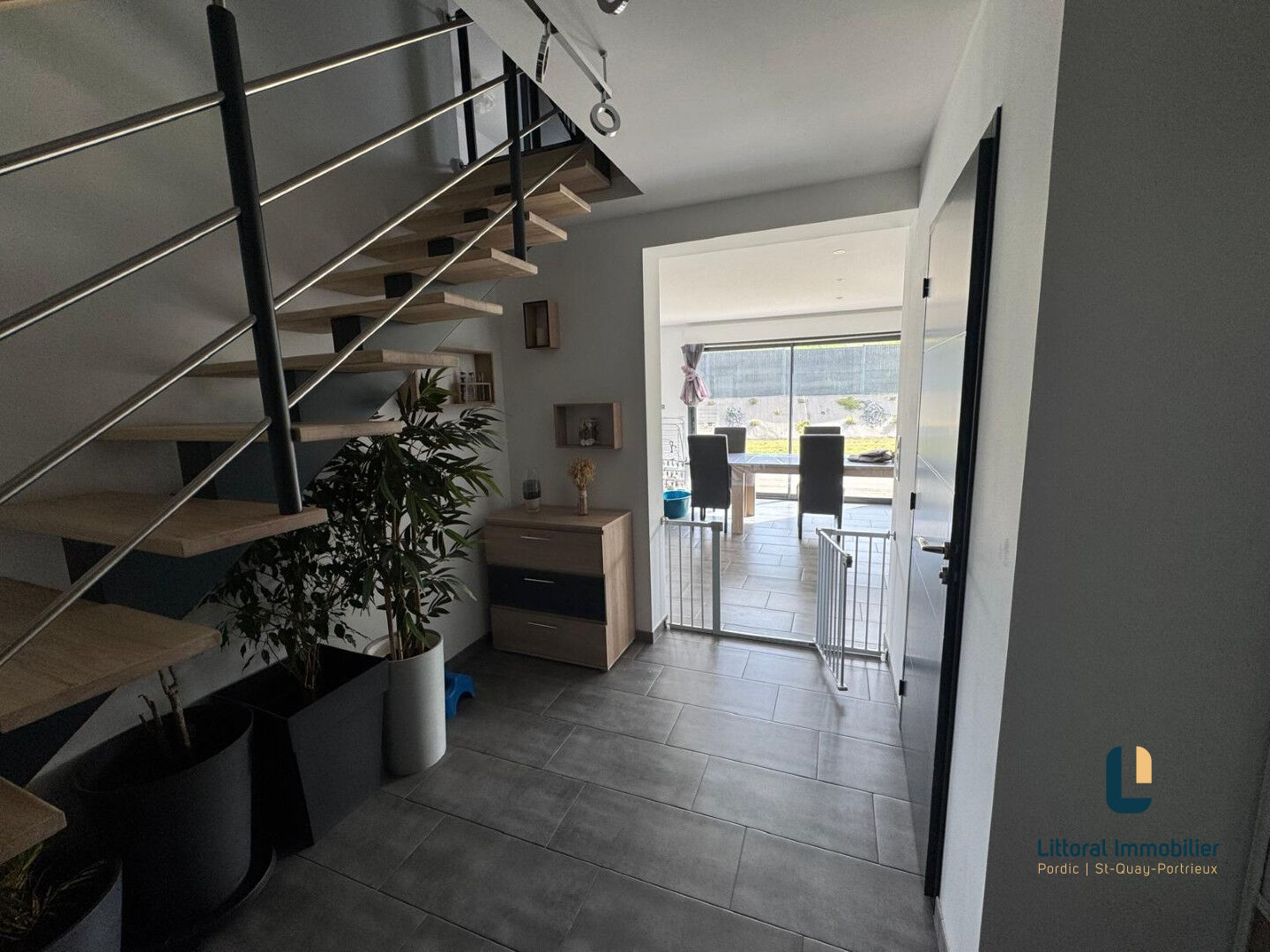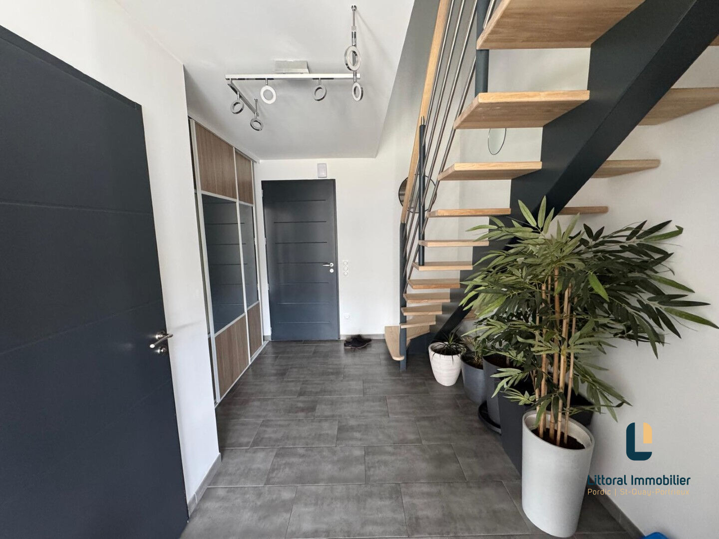 A 450 mètres de toutes les commodités, venez découvrir cette maison contemporaine comprenant 4 chambres dont une de plain pied, une pièce de vie lumineuse de près de 45 m² donnant sur une grande terrasse en bois, une chambre de plain pied de plus de 15m² avec salle d'eau et WC privatifs, WC indépendant dans l'entrée. A l'étage, un dégagement dessert 3 autres chambres spacieuses, une salle de bains et WC indépendant. Garage attenant carrelé, abris de jardin, clôtures réalisées, complètent ce bien de qualité. Entretenue à la perfection, vous n'aurez qu'à poser vos valises pour vous y installer.