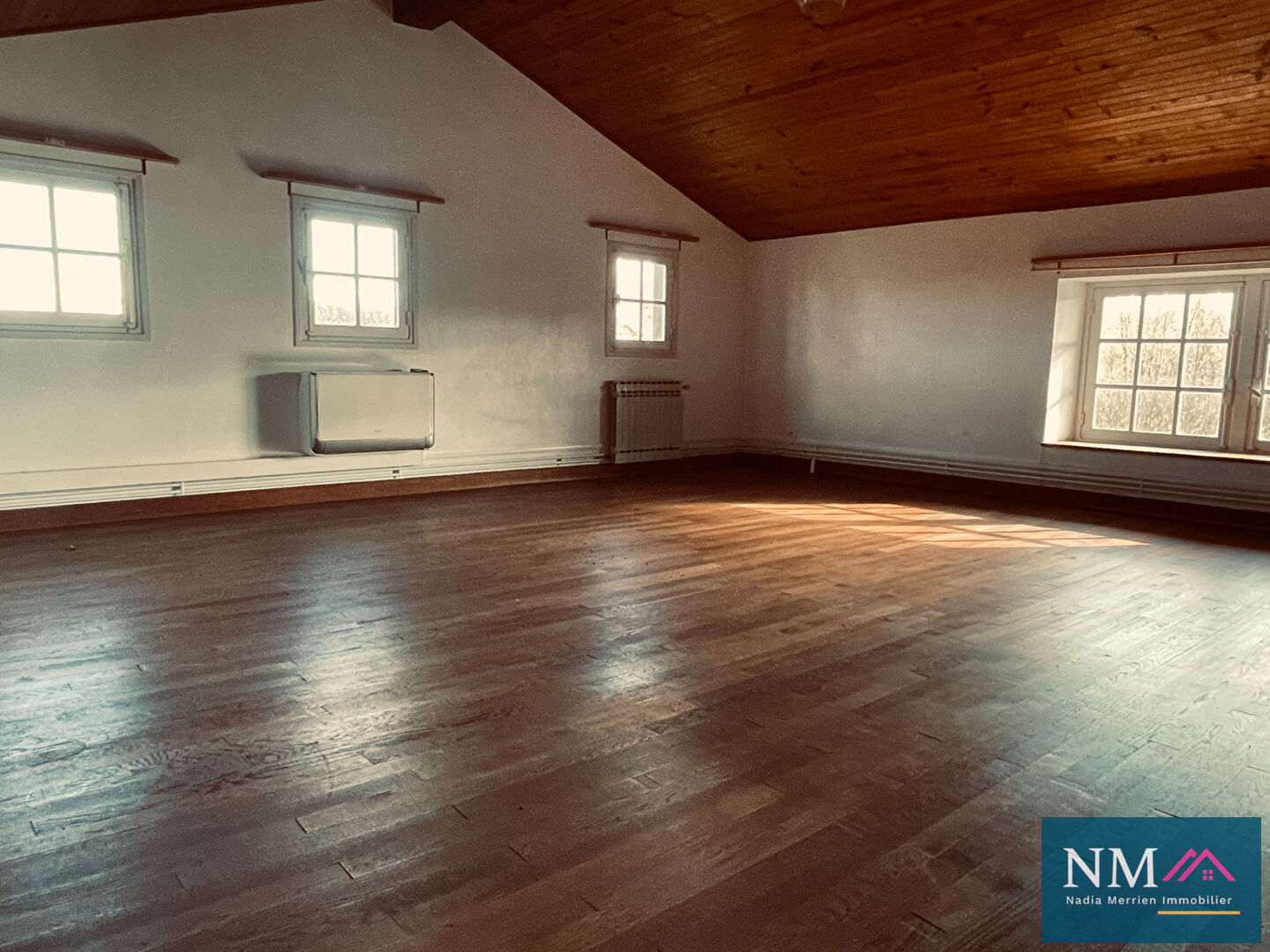 À l'étage, trois grandes chambres vous attendent, dont une impressionnante de 33 m² qui dispose de la climatisation. Une grande salle de bain est également disponible.