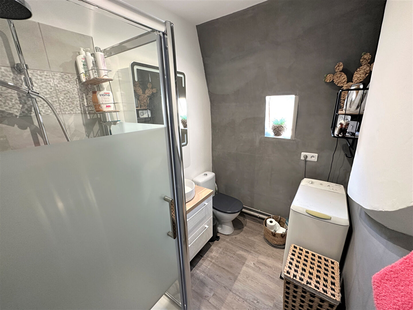 Au premier niveau, un hall d'entrée donnant sur un salon/séjour, une cuisine entièrement meublée et équipée, une chambre, une salle d'eau avec WC.