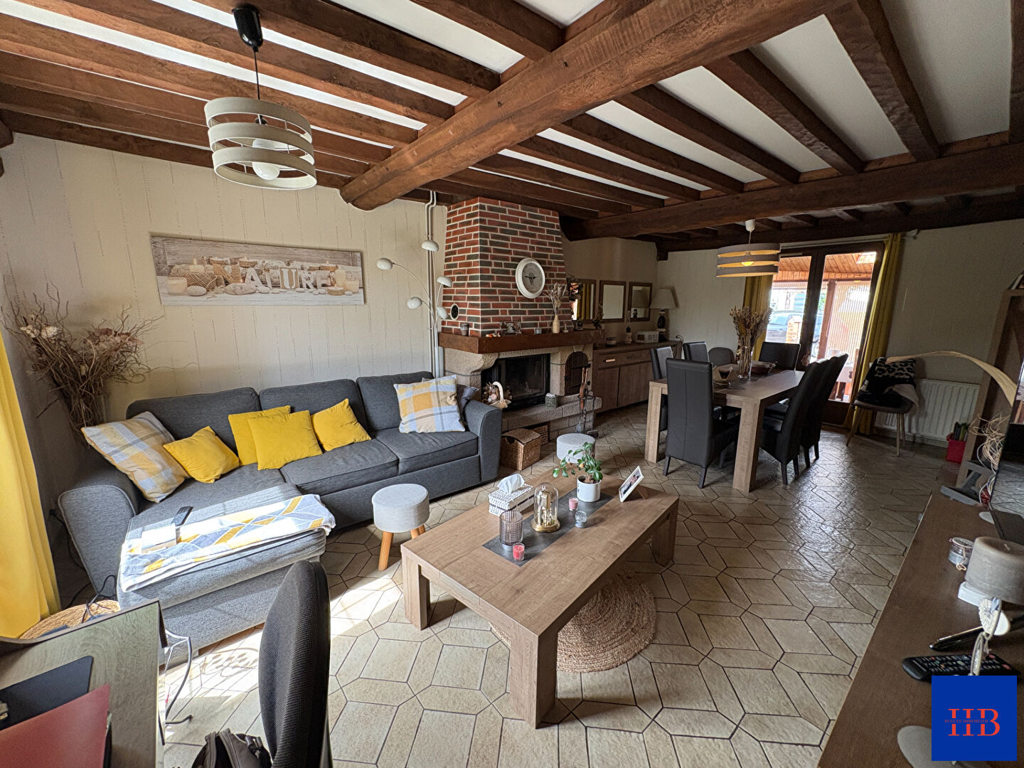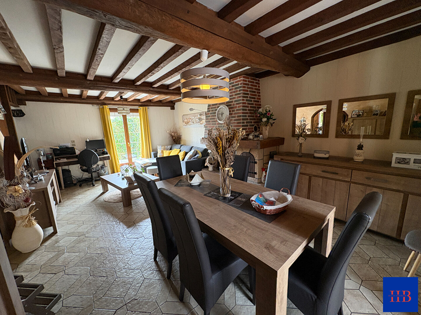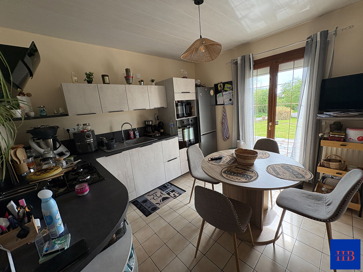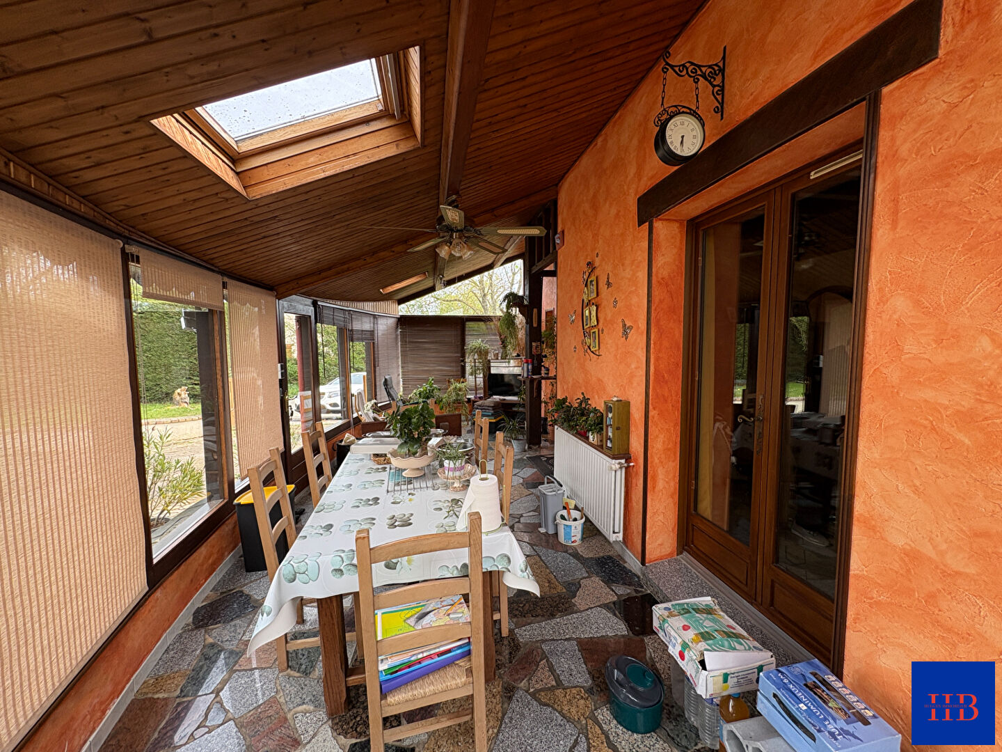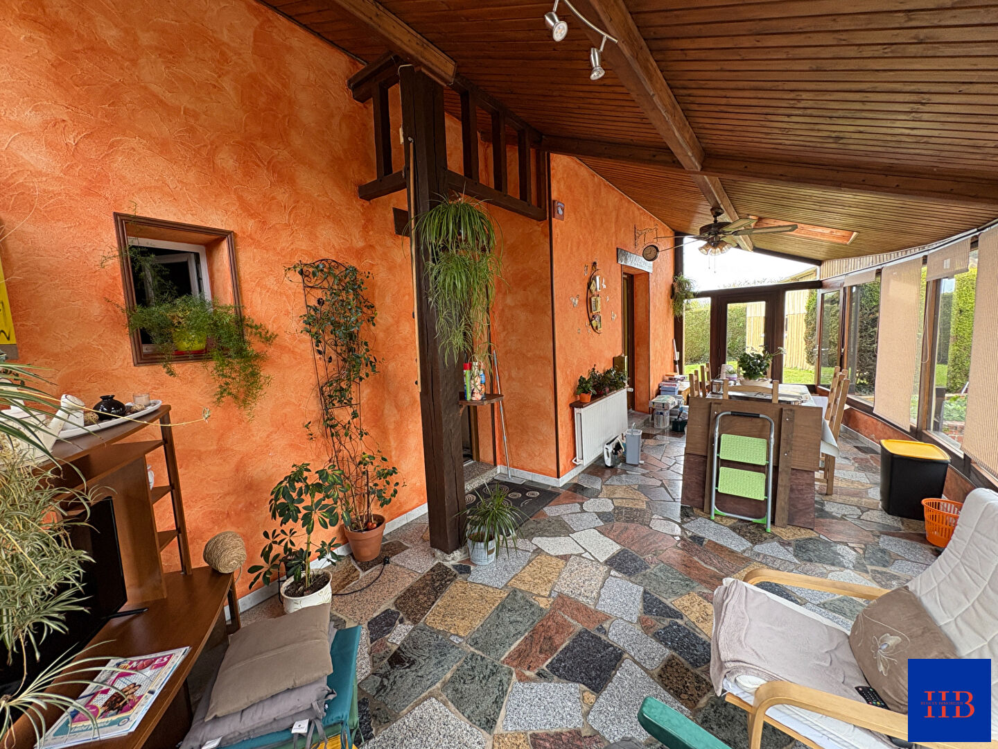 Pavillon comprenant cuisine aménagée équipée, séjour-salon avec insert, véranda, salle d'eau, wc et trois chambres