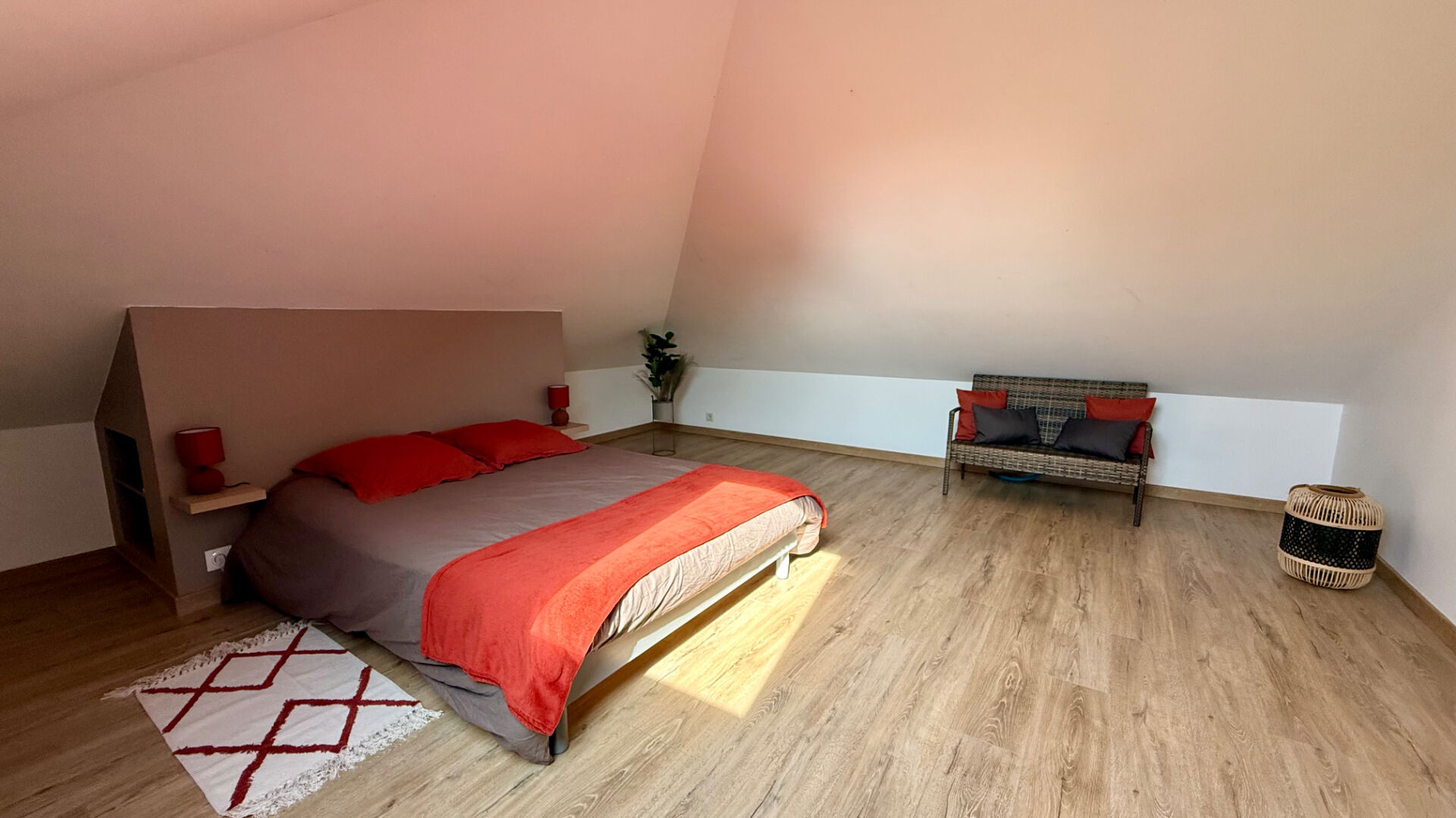 L'étage est aménagée avec une chambre et une pièce supplémentaire.