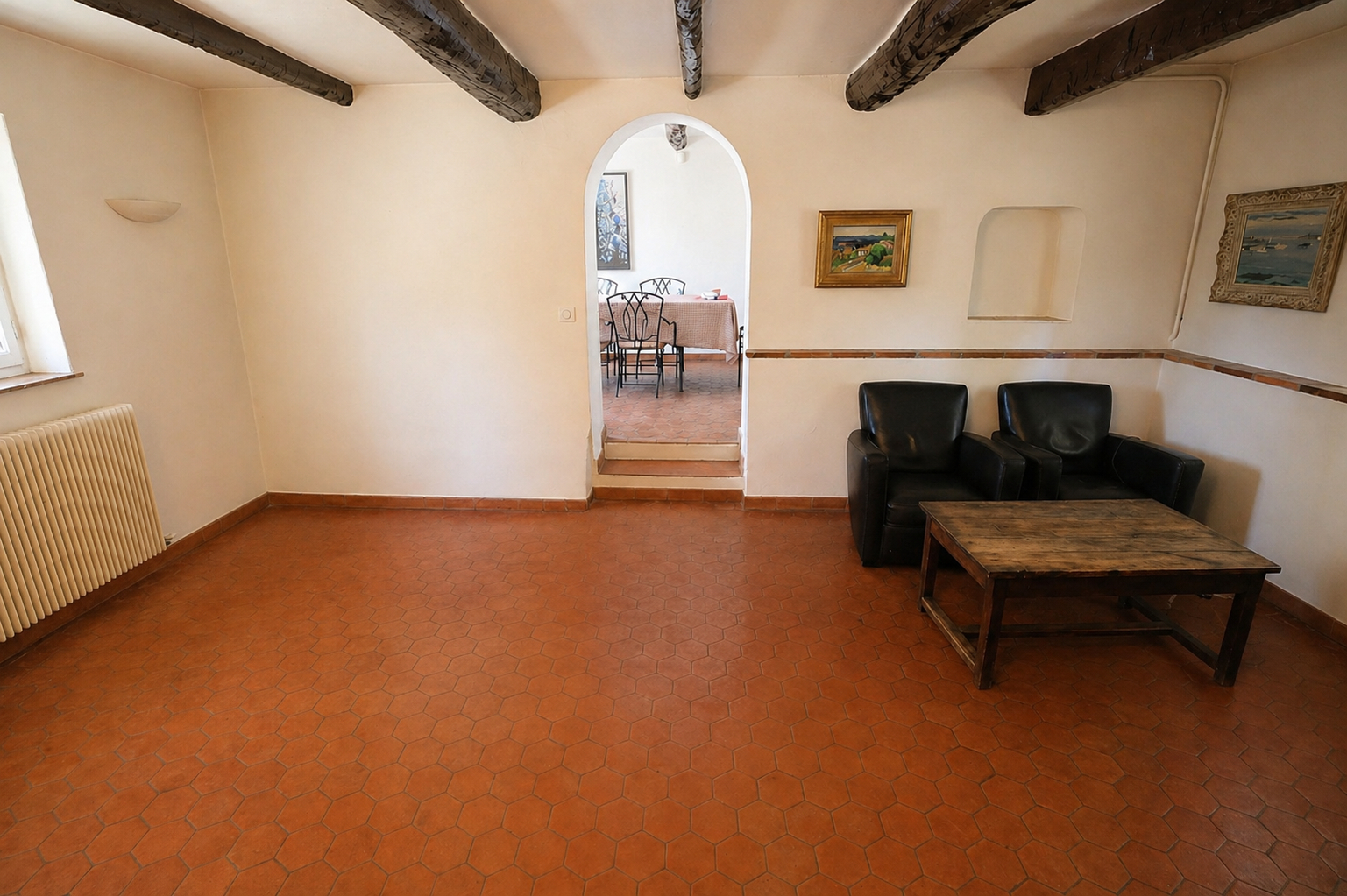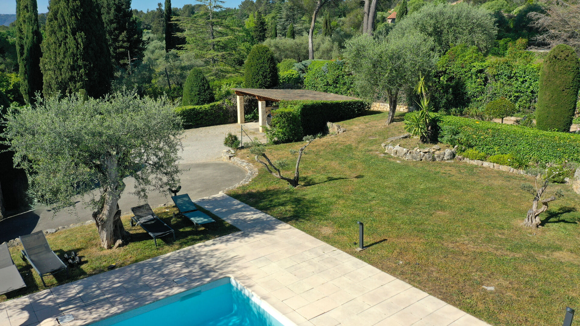 Abri couvert pour 2 voitures, terrain de boules, cave, atelier.