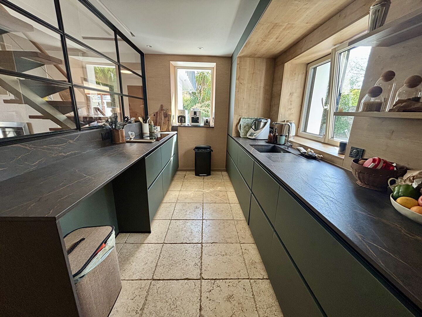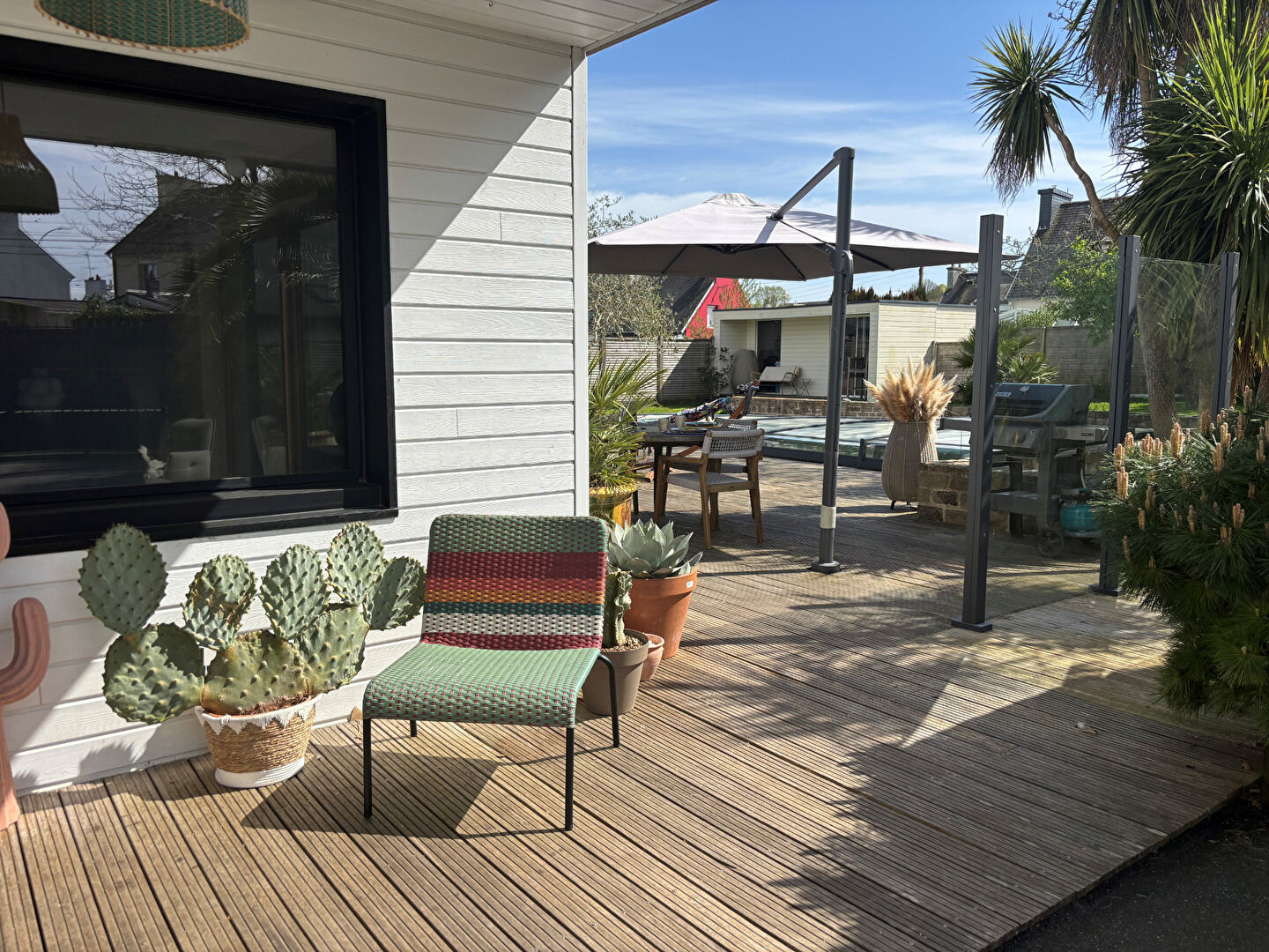 Quimper, Charmante propriété alliant cachet des années 50 et extensions contemporaines, offrant environ 260 m² habitables sur un superbe terrain paysagé et clos de 1 554 m². Spacieuse pièce à vivre avec cheminée, belle luminosité, cuisine neuve et suite parentale en rez-de-chaussée assurent un confort de vie optimal. À l'extérieur, profitez d'un jardin préservé avec piscine chauffée et pool house, idéal pour les beaux jours. Un studio indépendant et un grand garage complètent ce bien rare, situé à proximité du centre de Quimper et de l'accès aux plages.