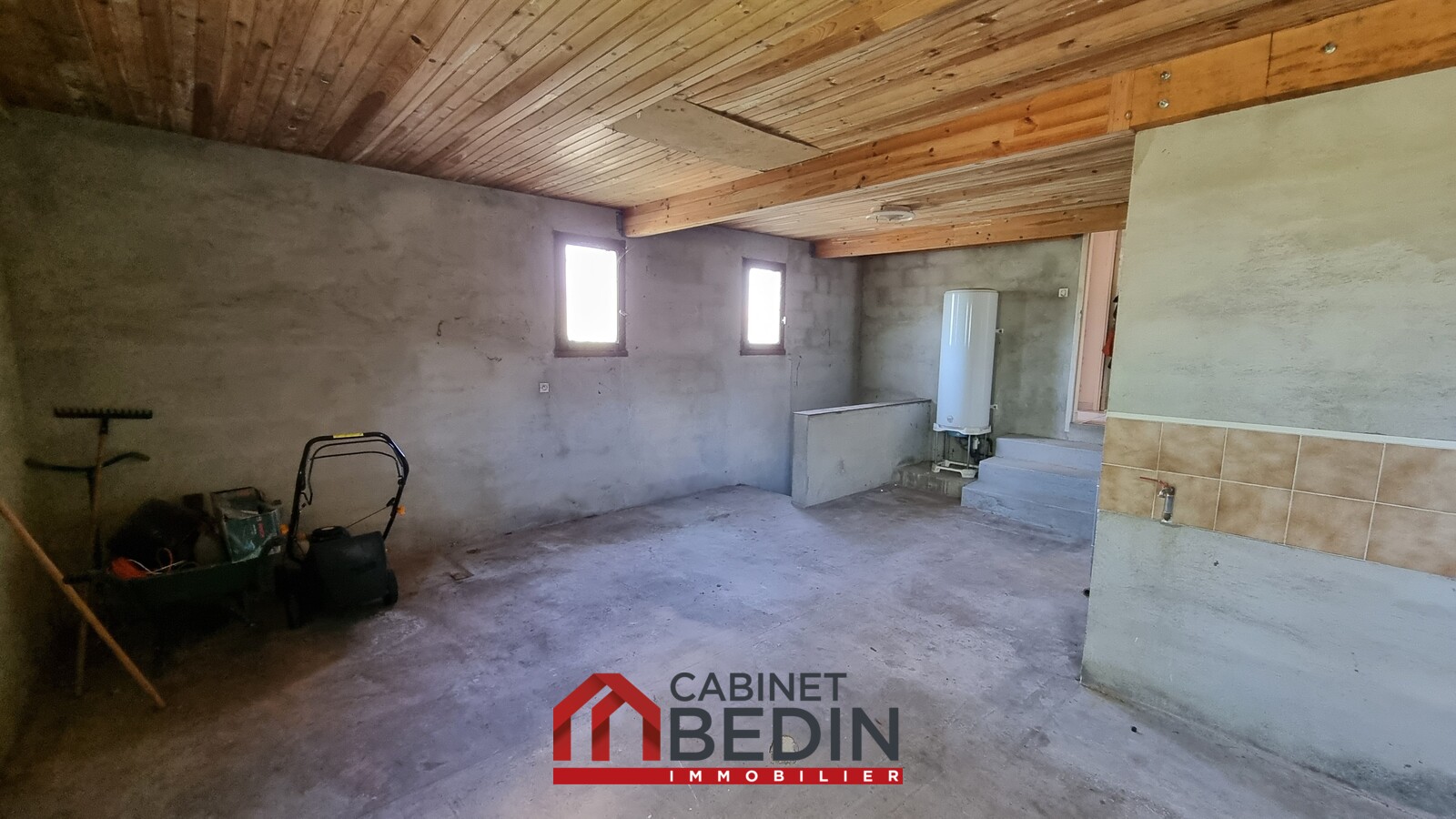 Un grand garage de 38 m² complète ce bien, idéal pour le stationnement, le stockage ou un projet d?aménagement.