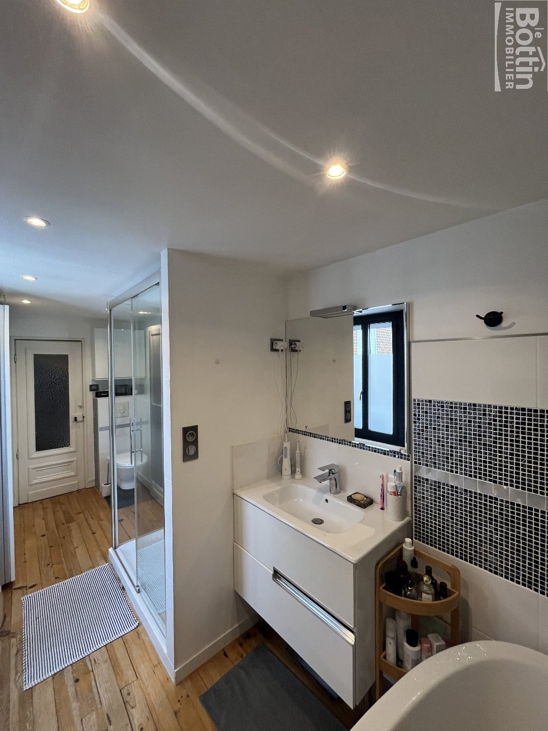 À l'étage, une agréable salle de bain avec baignoire et douche, accompagnée de WC. Deux chambres complètent ce niveau.