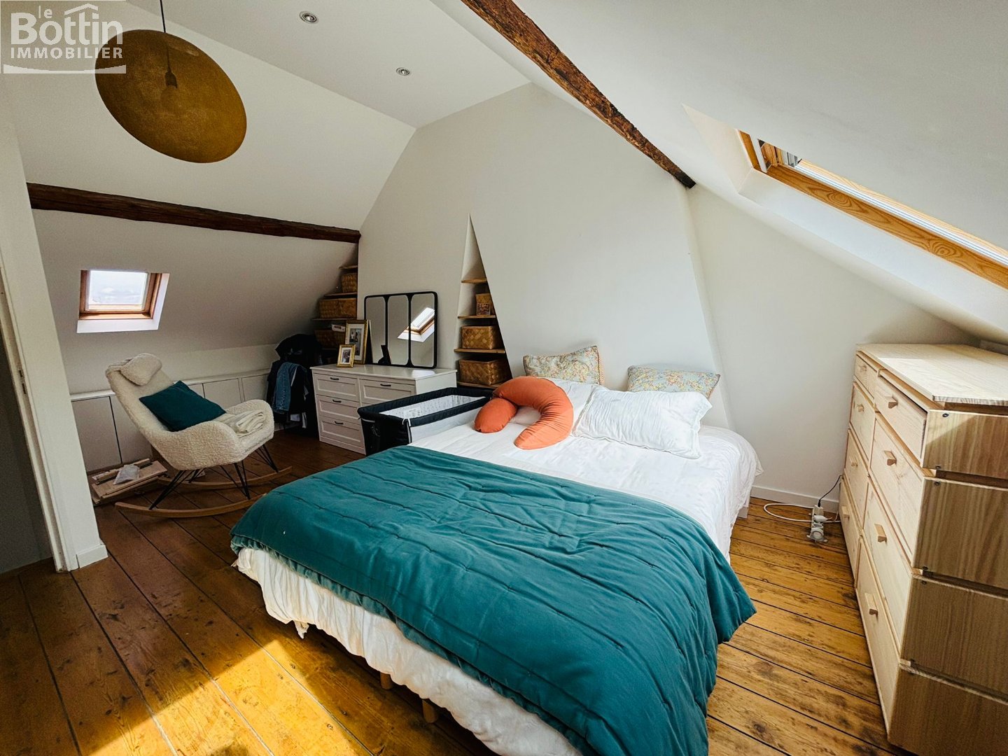 Une grande chambre sous combles au second étage offre un espace cosy et intime.
