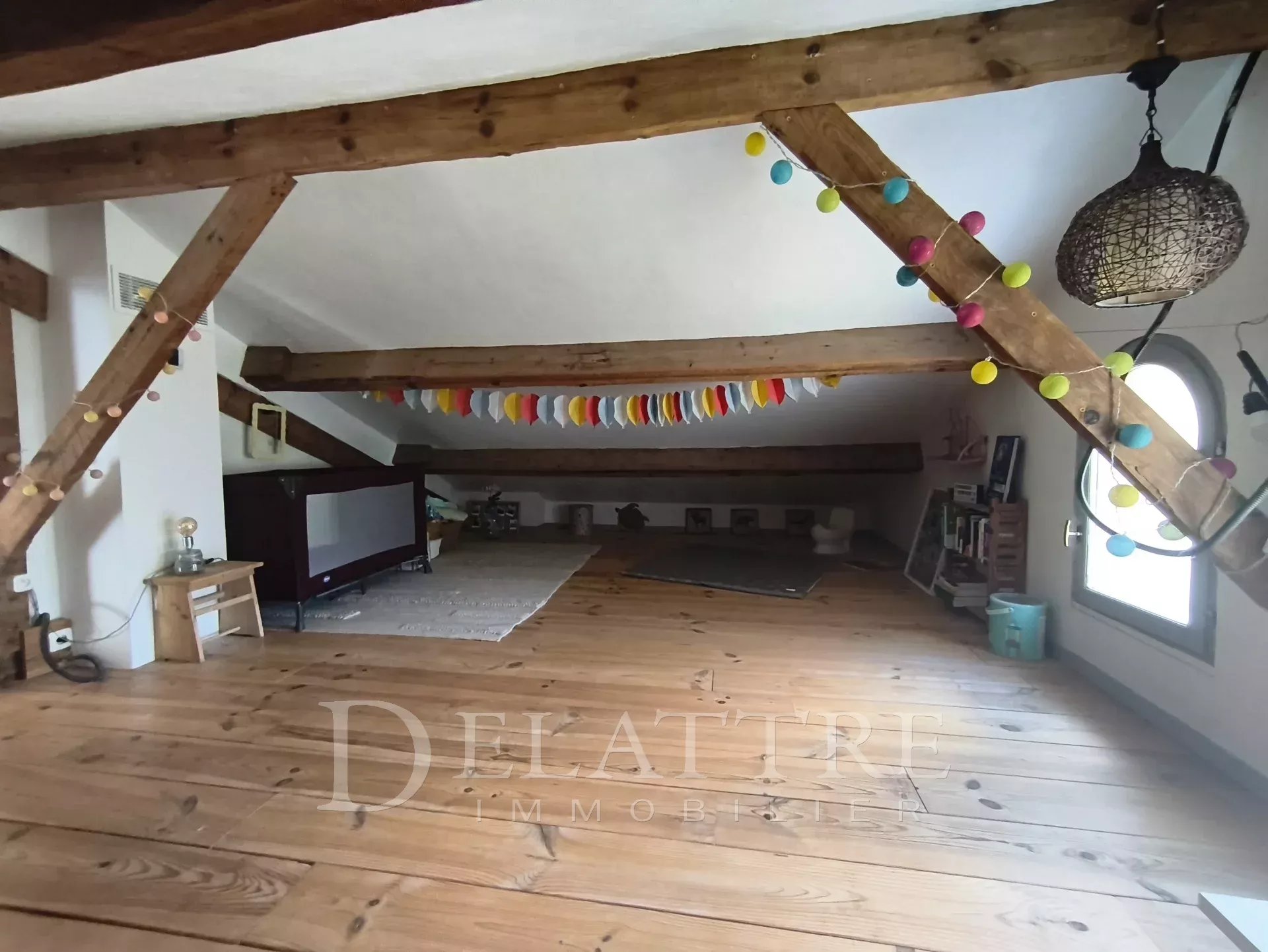 Dès l’entrée, vous découvrirez un séjour baigné de lumière, ouvert sur une cuisine conviviale, idéal pour partager de chaleureux moments. Deux chambres de plain-pied offrent un confort appréciable, complétées par une salle de bains, tandis qu’une vaste pièce mansardée à l'étage laisse libre cours à vos envies d’aménagement.