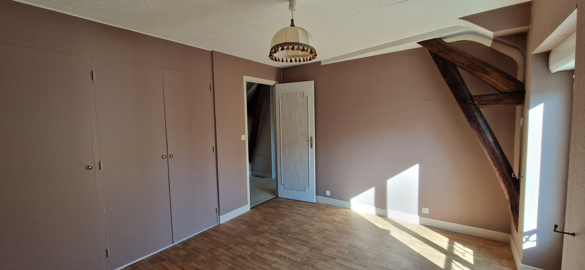 DEUX BELLES PIECES DE VIE TOTALISANT 43 M2 ENV AVEC CHEMINEE CENTRALE, UNE CUISINE AMENAGEE, TROIS CHAMBRES, UN ESPACE BUREAU ET UNE SALLE DE BAINS (DOUCHE ET BAIGNOIRE) ET DE NOMBREUX RANGEMENTS