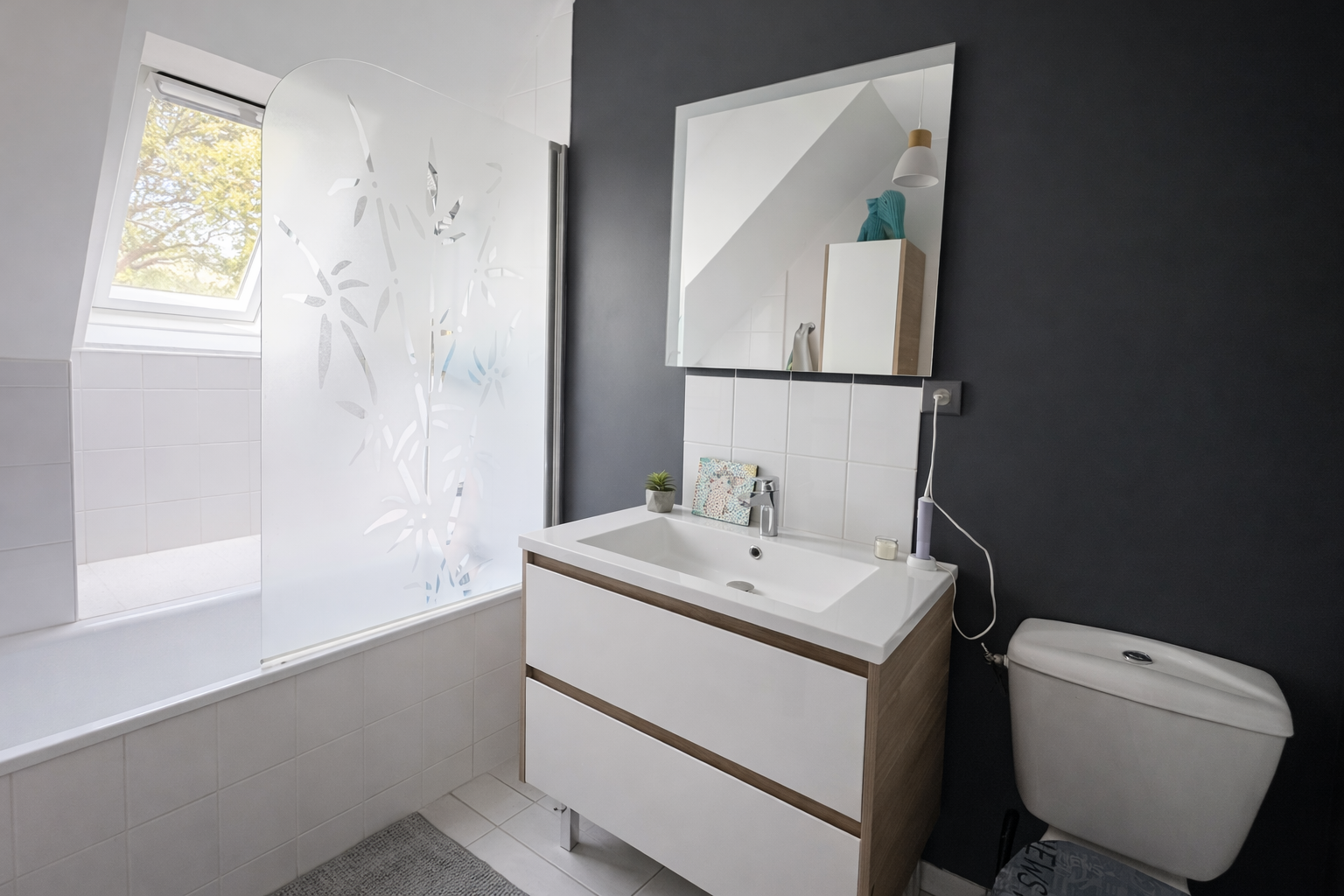 À l'étage, un palier dessert trois belles chambres, un bureau parfait pour le télétravail, ainsi qu'une suite parentale avec dressing et salle d'eau, véritable espace privatif. Une seconde salle d'eau vient compléter cet étage pour plus de confort. Afin de compléter ce bien, un grenier aménageable avec de beaux volumes peut être transformé en en espace habitable.