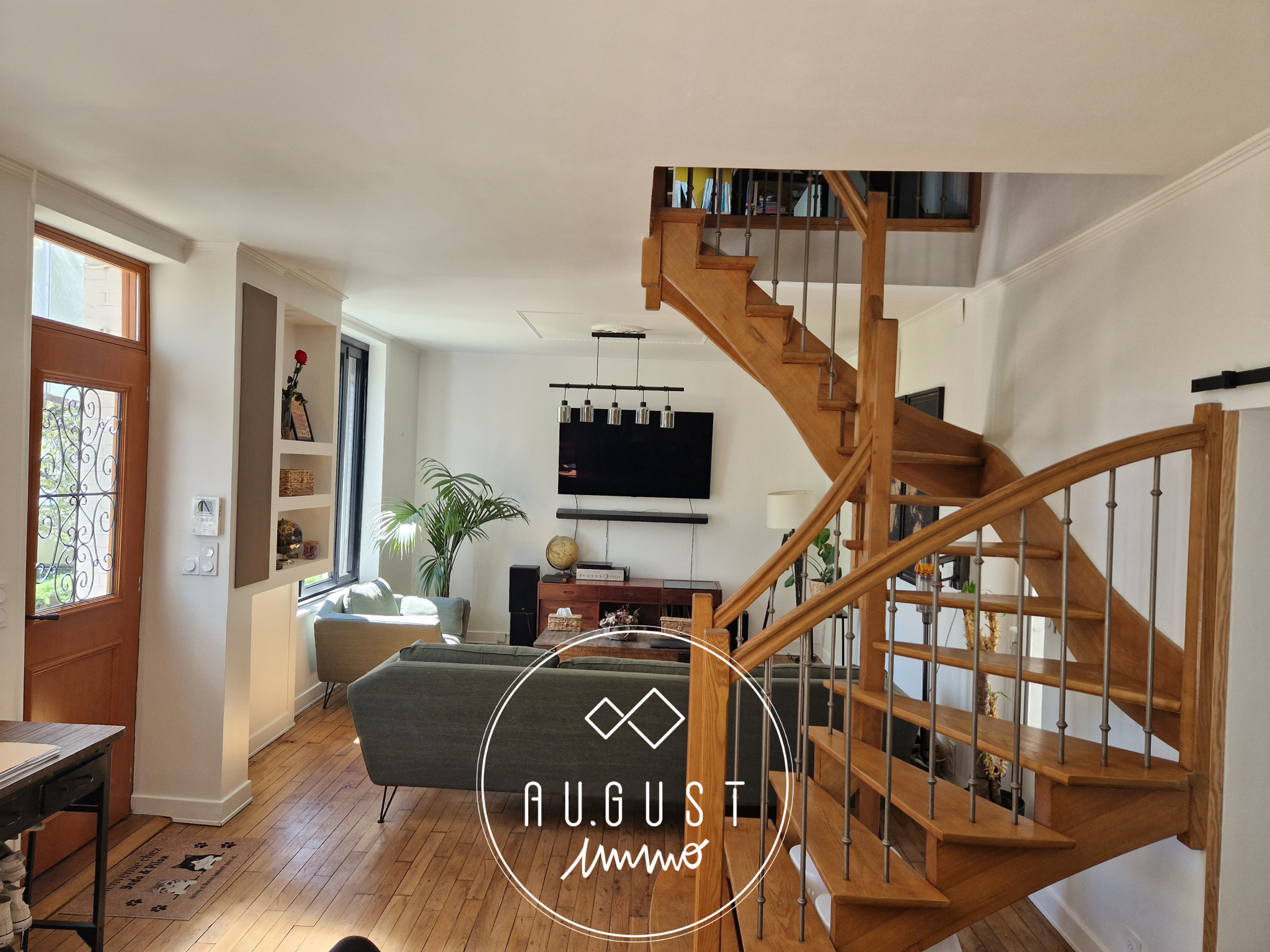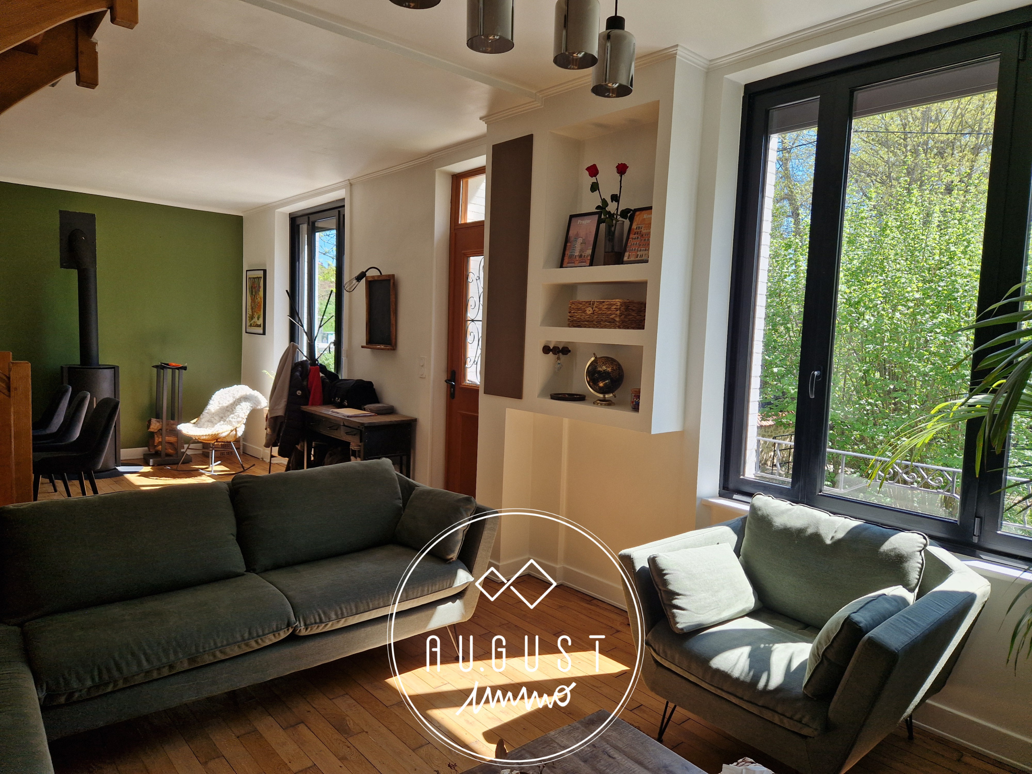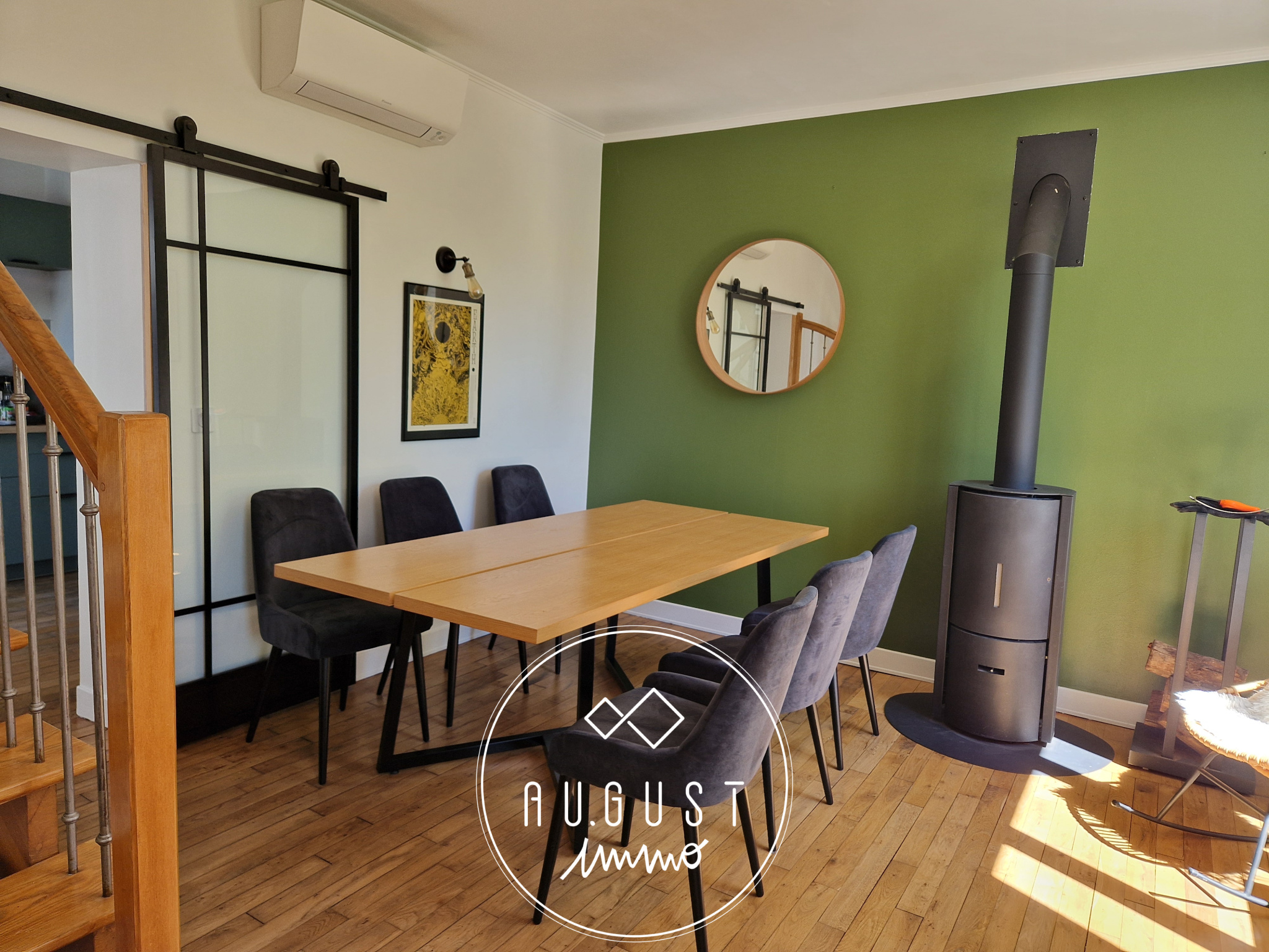 Exclusivité Limoges Est : August est très heureux de vous présenter cette magnifique petite maison des années 30 dans un état impeccable. Proche des commodités, à moins de 10mns du centre ville, ce bien, rénové avec gout ,conviendra pour une personne seule avec ou sans enfant, ou un couple, avec ou sans enfant. En retrait de la rue, cachée derrière un jardin arboré de 200m2, et traversé par un ru adorable, cette maison vous séduira par son esthétisme et ses belles prestations : dès l'entrée, vous voilà plongé dans un magnifique séjour/salon de plus de 35m2, avec pöele à bois et climatisation reversible, et qui annonce déjà une charmante cuisine neuve toute équipée. Un accès direct sur une terrasse arrière vous permettra ainsi de profiter d'un second extérieur. Une salle d'eau contemporaine en parfait état , et son wc ,complètent ce niveau. Au premier et dernier étage, un plateau original dessert un bureau ouvert , une belle chambre et une chambre plus cosy. Une cave sous toute la maison permet stockage et cave à vin. Cette maison plaira à tous les amoureux de la pierre et de l'architecture travaillée des années folles. Toutes nos offres sur www.august-immobilier-limoges.fr