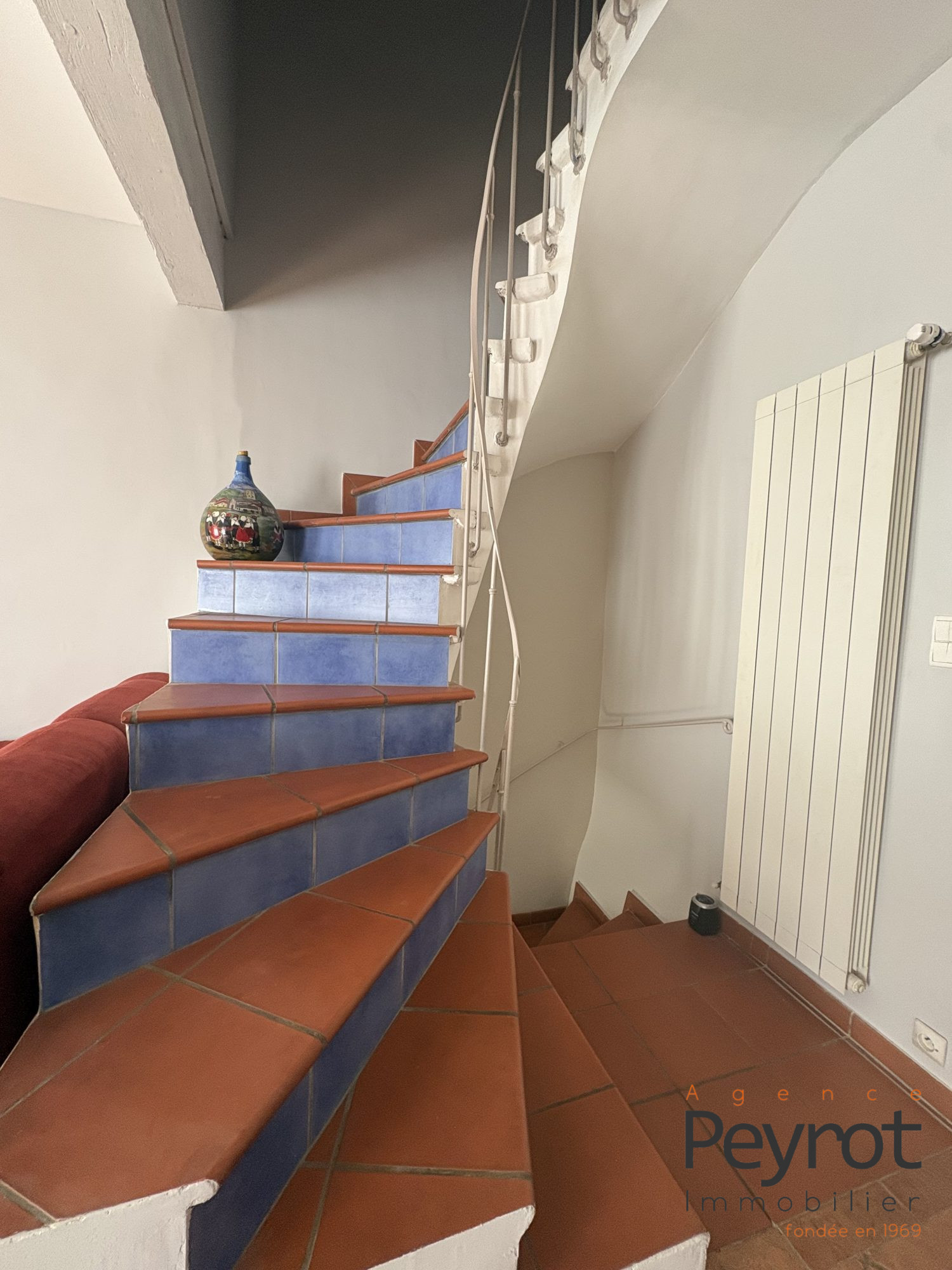 Le premier étage offre une agréable et lumineuse pièce de vie composée d'une cuisine équipée et aménagée ouverte sur le salon/séjour, une chambre avec placard, une salle d'eau avec accès à une cour + un cellier de rangement, ainsi qu'un second WC indépendant.