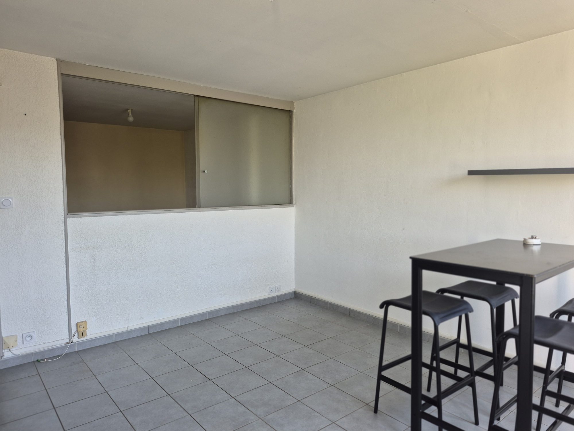 L'appartement se compose d'une entrée desservant, sur la gauche, une pièce faisant office de chambre, ouverte sur un séjour lumineux avec cuisine entièrement équipée. Sur la droite, vous trouverez une salle d'eau avec toilettes.