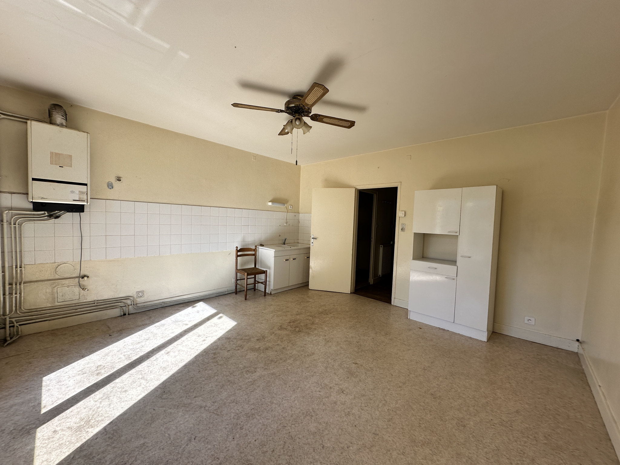 Immeuble mixte offrant un local commercial en rez-de-chaussée et un logement spacieux au-dessus :Habitation de près de 90m2 comprenant :CuisineSalon avec terrasse Buanderie2 WCsSalle d'eau2 grandes chambres de plus de 18m2 chacune