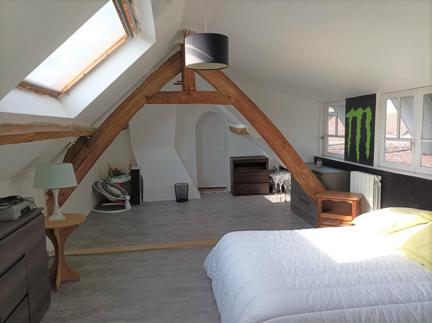 Le deuxième étage offre une grande chambre supplémentaire, un grenier aménageable (possibilité d'une chambre additionnelle) et une pièce pouvant accueillir une salle d'eau/WC (arrivées existantes).