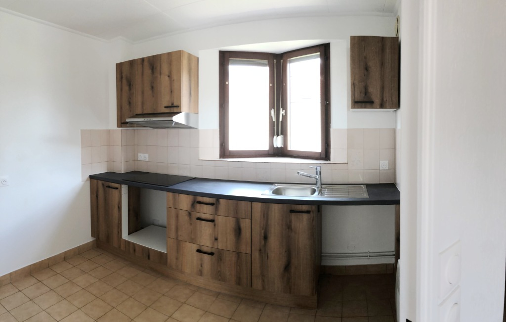 Au premier étage, un séjour lumineux de 27m2 ouvrant sur un balcon, une cuisine indépendante aménagée et un wc avec lave-mains.