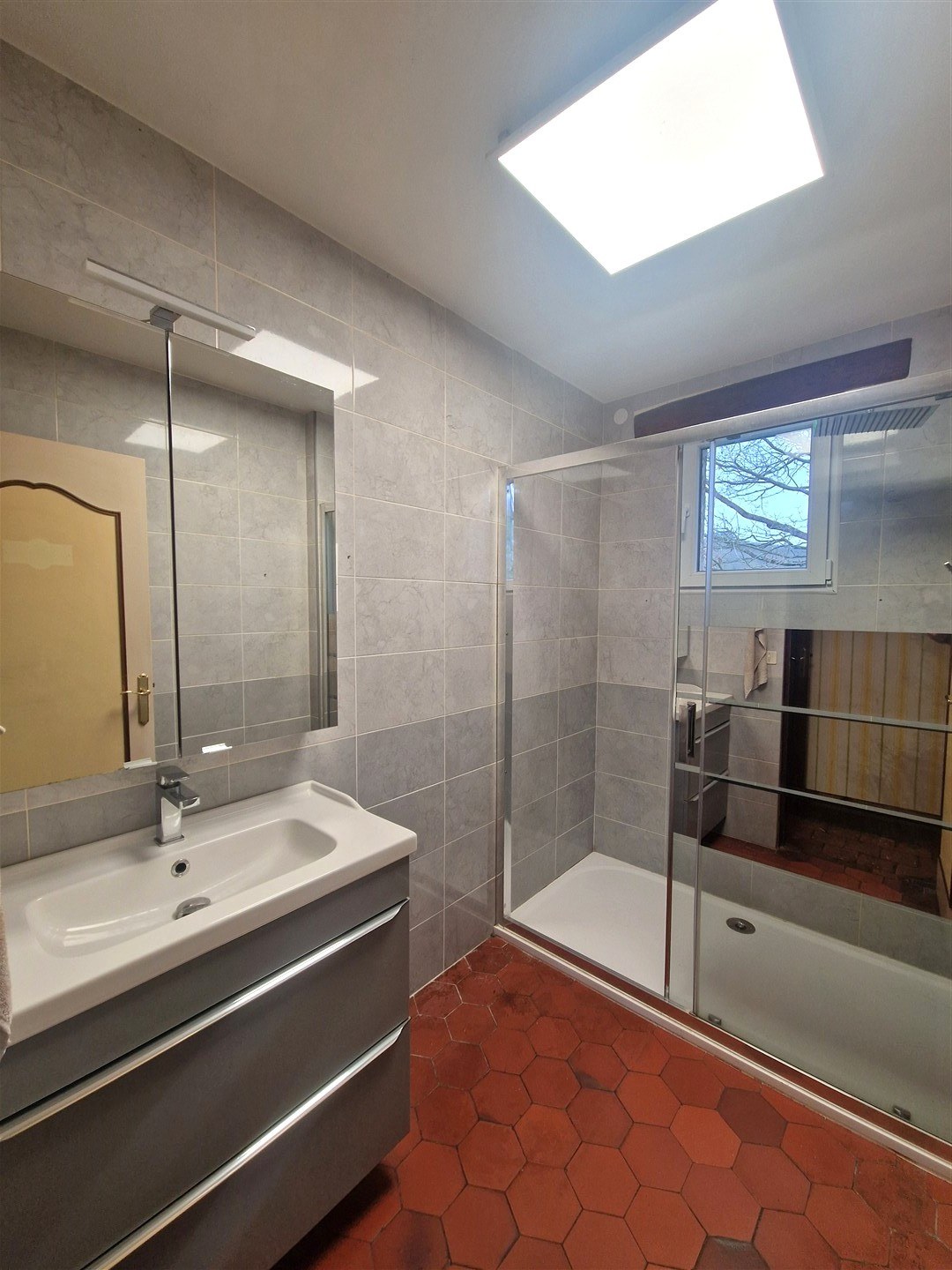 À l'extérieur, vous profiterez d'une belle terrasse donnant sur le jardin clos, idéal pour les moments de détente en famille ou entre amis.