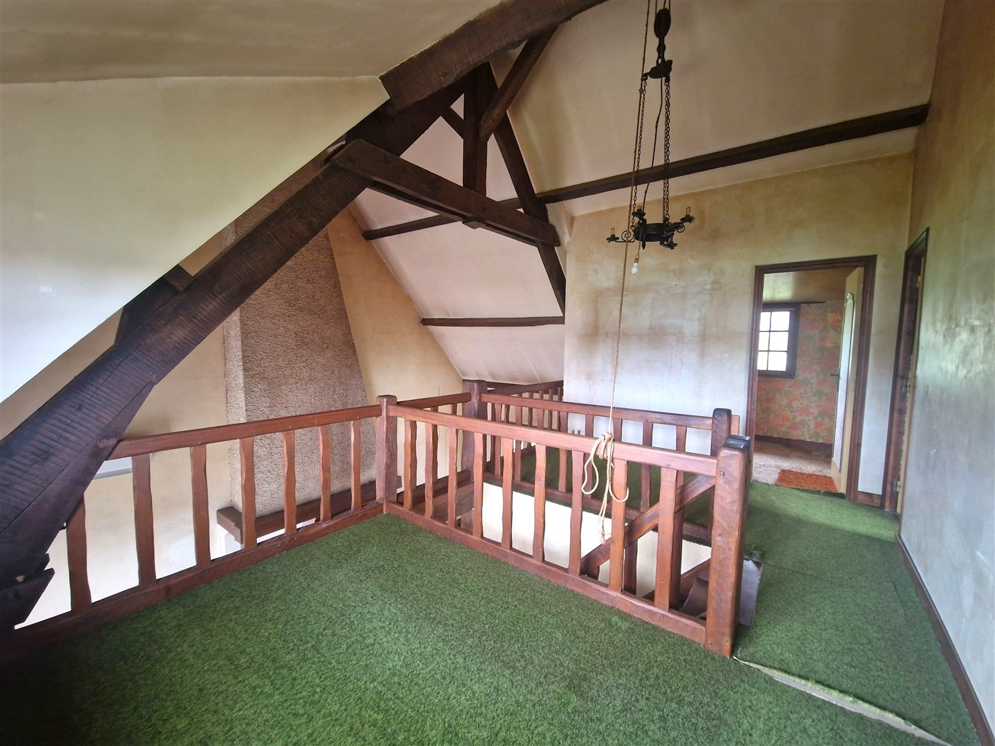 Au rez-de-chaussée, vous serez accueilli par une entrée donnant sur une cuisine aménagée, suivie d'un vaste espace de vie en partie cathédrale et agrémenté d'une cheminée à foyer ouvert, idéal pour vos soirées conviviales. Un dégagement dessert une chambre, une salle de douche et des WC indépendants.