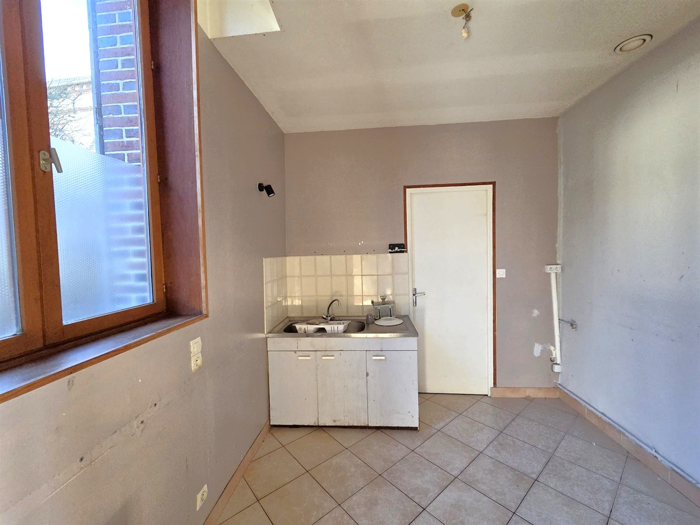 - T2 de 33 m2 env : Kitchenette / espace de vie, une chambre, salle de bians / wc.