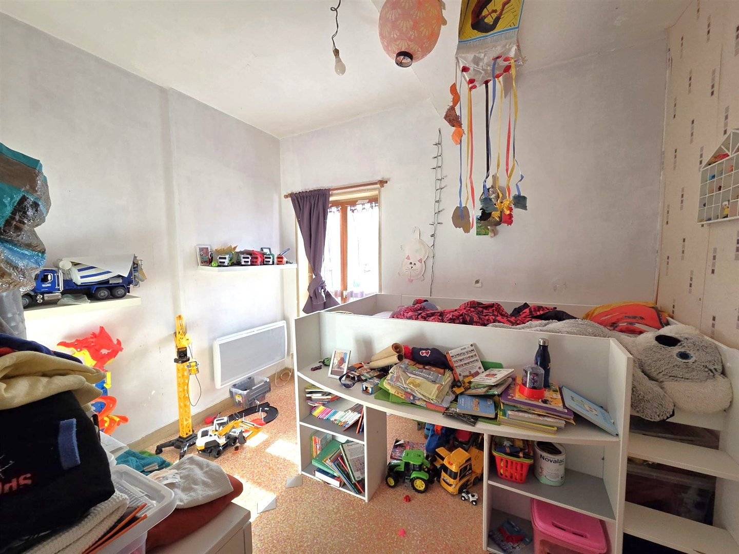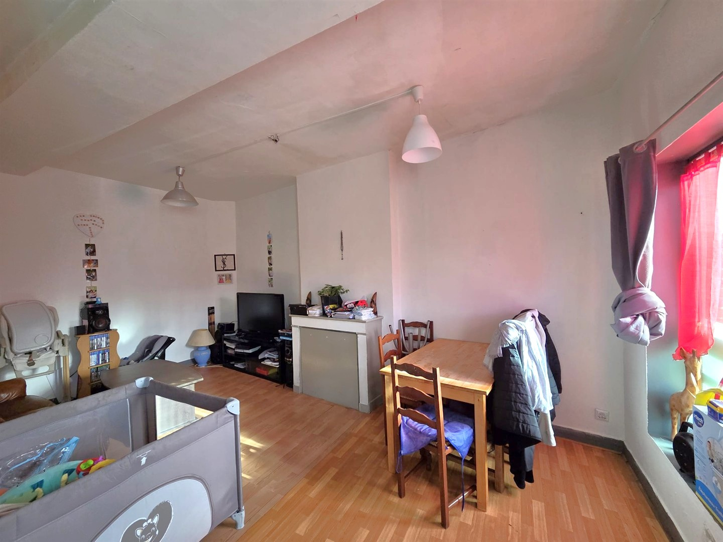 - T3 de 66 m2 env : Coin cuisine, espace de vie, deux chambres, buanderie, salle de bains / wc.
