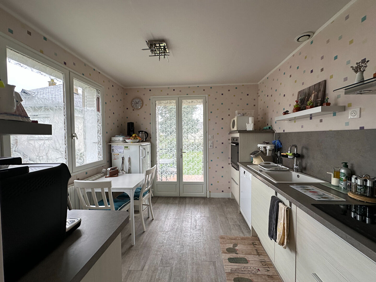 Entrée sur salon, salle à manger, cuisine aménagée donnant sur terrasse pour apprécier et descendre au jardin, dégagement, 3 chambres, salle d'eau, wc