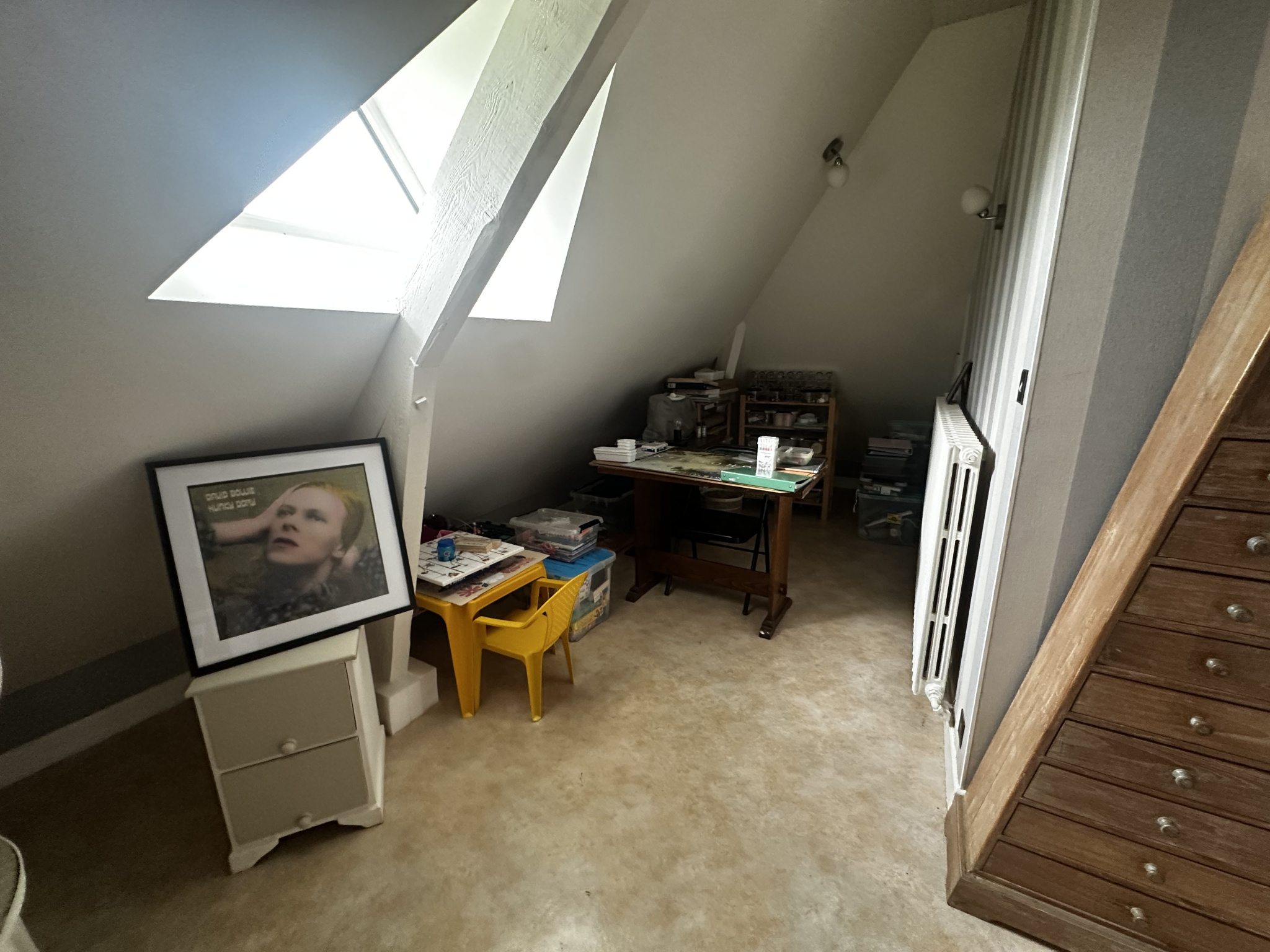 La cuisine indépendante, fonctionnelle et bien agencée, laisse entrevoir de nombreuses possibilités d'évolution selon vos envies en récupérant du volume dans la grande entrée palière par exemple. Ce niveau propose également une chambre, un bureau, une salle d'eau ainsi qu'un WC indépendant, permettant une vie de plain-pied confortable et fluide.