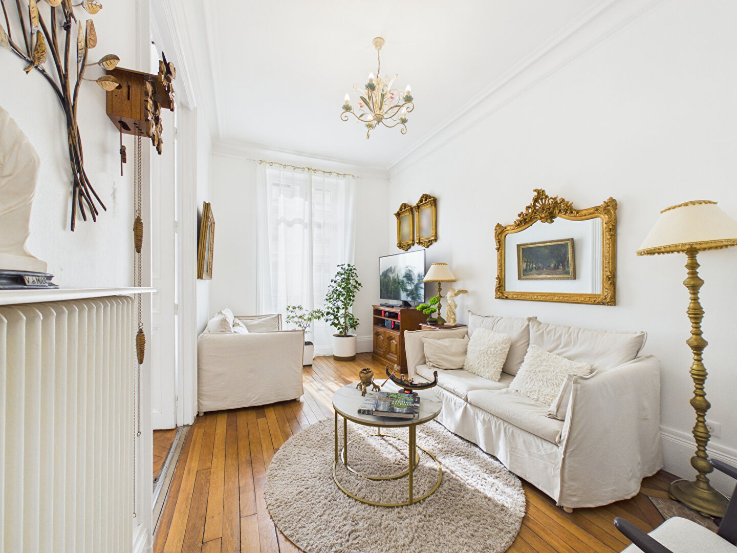 Situé en rez-de-chaussée surélevé d'un immeuble ancien, ce bien entièrement rénové a su préserver toute l'élégance de l'époque : parquet massif d'origine, boiseries, moulures raffinées, hauteur sous plafond de plus de 3 mètres et pas moins de 4 cheminées en marbre. Que de cachet !